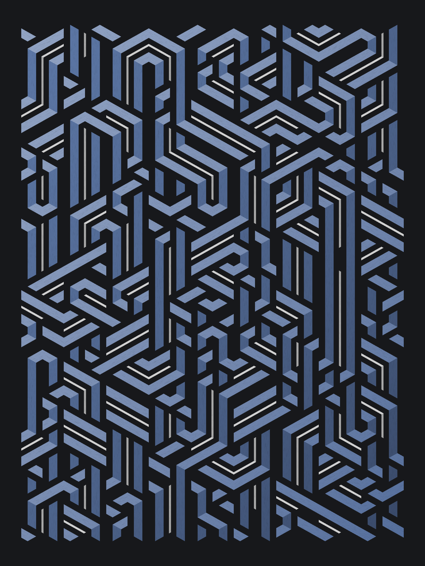 Lines are bent and shaded. There are no wrong turns. [Interaction in live view: press 1-7 or left/right arrow keys to see the stages of sketch construction: 1-grid, 2-divide, 3-tile, 4-bend, 5-shade, 6-color, 7-texture]