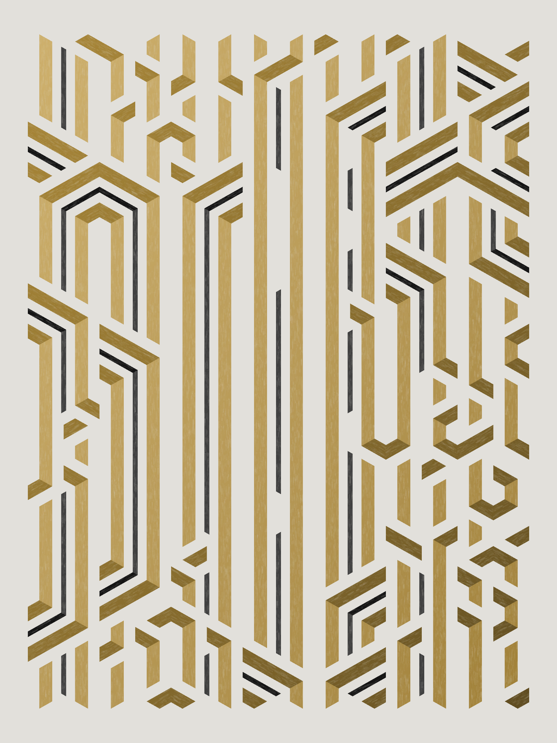 Lines are bent and shaded. There are no wrong turns. [Interaction in live view: press 1-7 or left/right arrow keys to see the stages of sketch construction: 1-grid, 2-divide, 3-tile, 4-bend, 5-shade, 6-color, 7-texture]