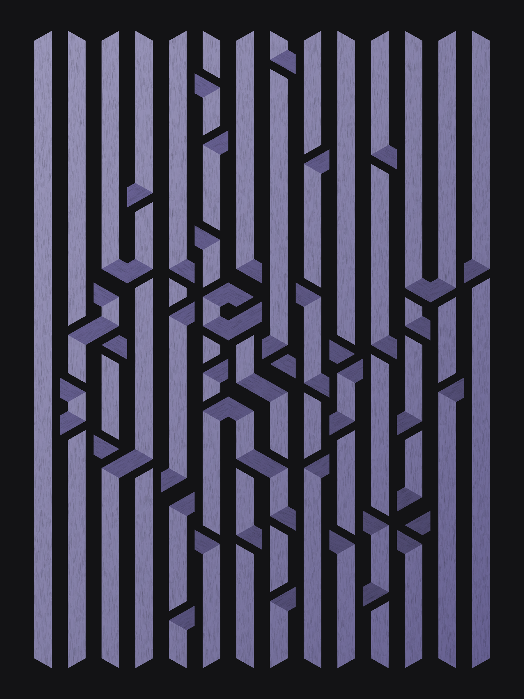 Lines are bent and shaded. There are no wrong turns. [Interaction in live view: press 1-7 or left/right arrow keys to see the stages of sketch construction: 1-grid, 2-divide, 3-tile, 4-bend, 5-shade, 6-color, 7-texture]