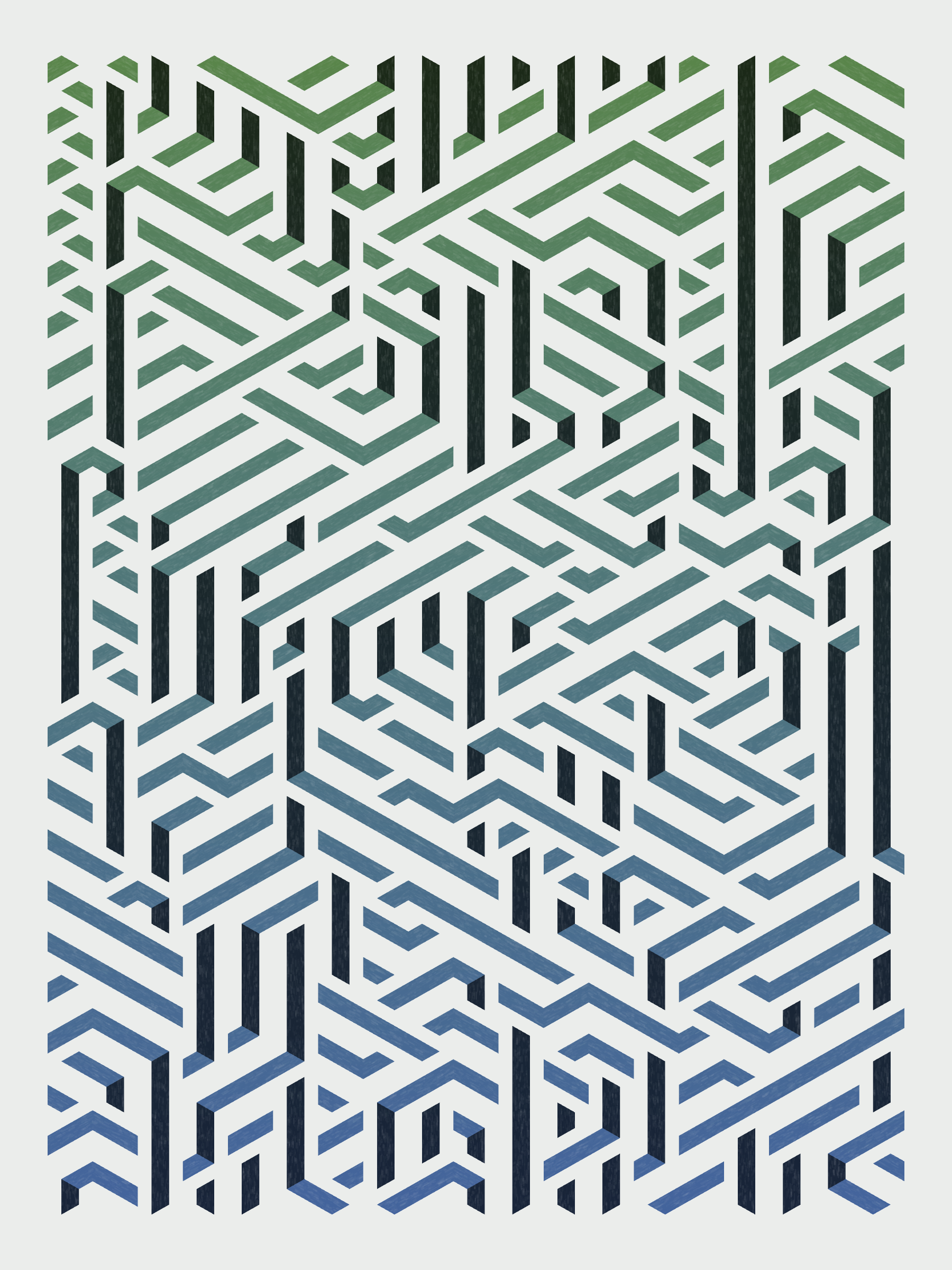 Lines are bent and shaded. There are no wrong turns. [Interaction in live view: press 1-7 or left/right arrow keys to see the stages of sketch construction: 1-grid, 2-divide, 3-tile, 4-bend, 5-shade, 6-color, 7-texture]