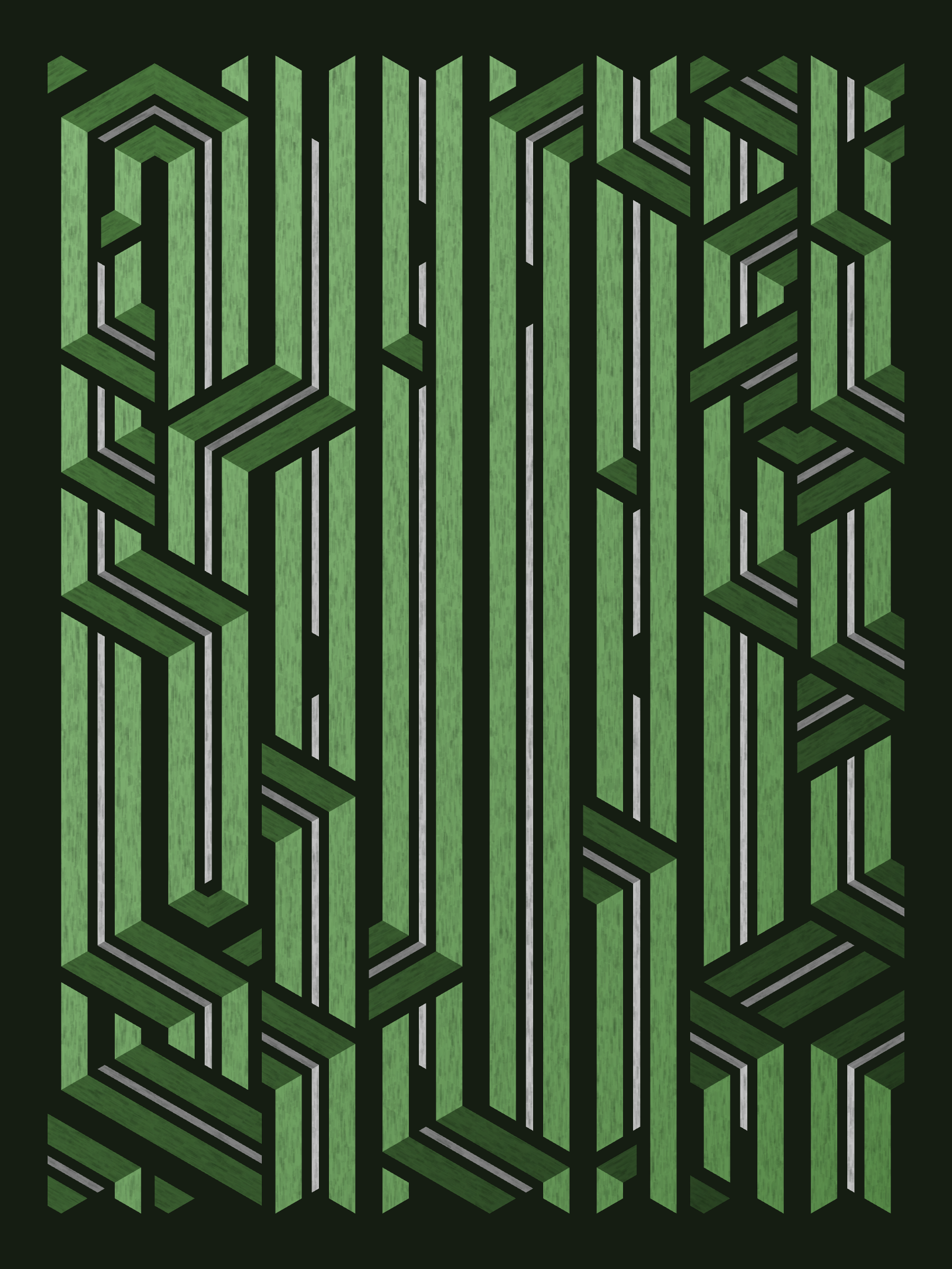 Lines are bent and shaded. There are no wrong turns. [Interaction in live view: press 1-7 or left/right arrow keys to see the stages of sketch construction: 1-grid, 2-divide, 3-tile, 4-bend, 5-shade, 6-color, 7-texture]