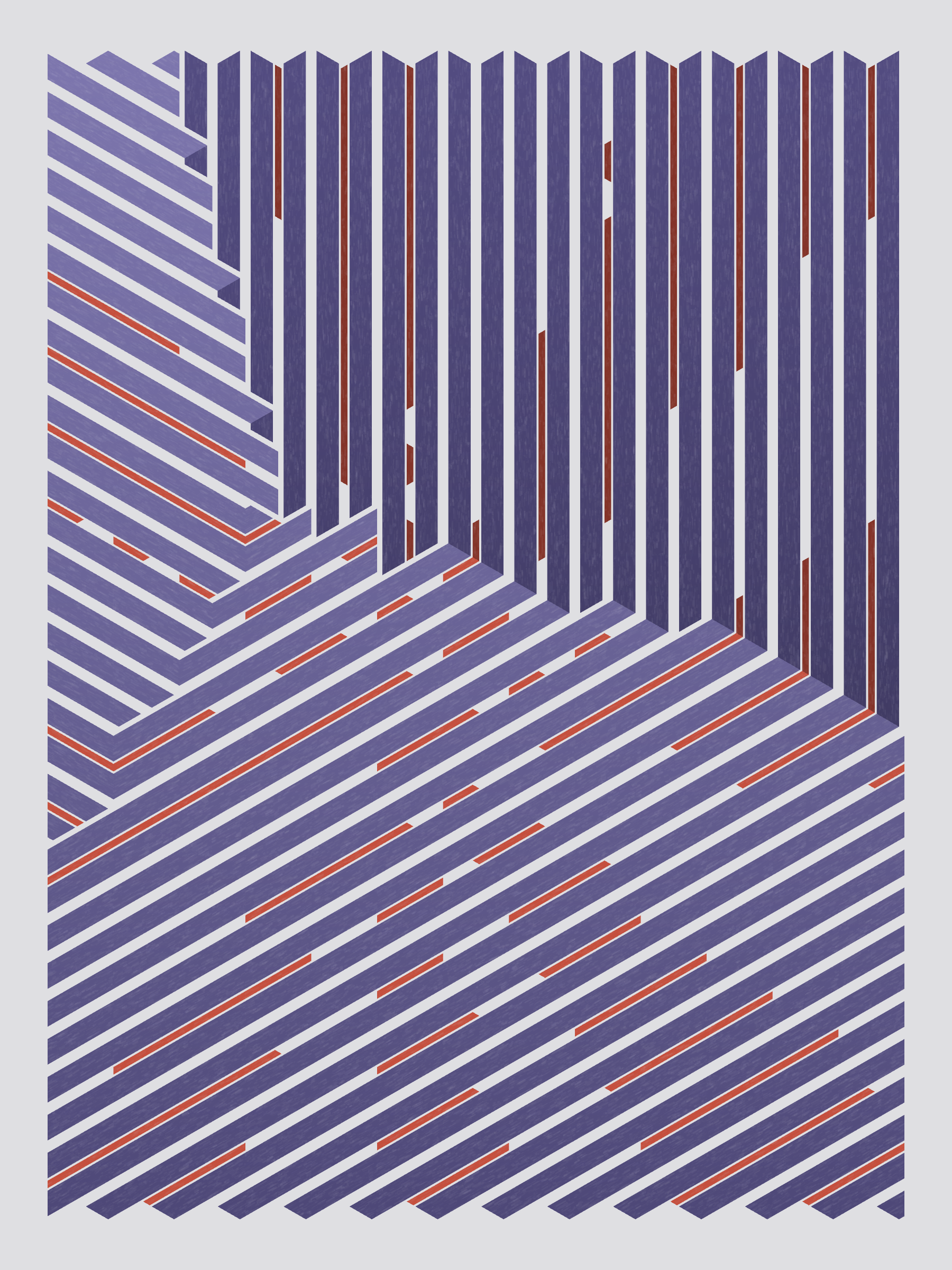 Lines are bent and shaded. There are no wrong turns. [Interaction in live view: press 1-7 or left/right arrow keys to see the stages of sketch construction: 1-grid, 2-divide, 3-tile, 4-bend, 5-shade, 6-color, 7-texture]