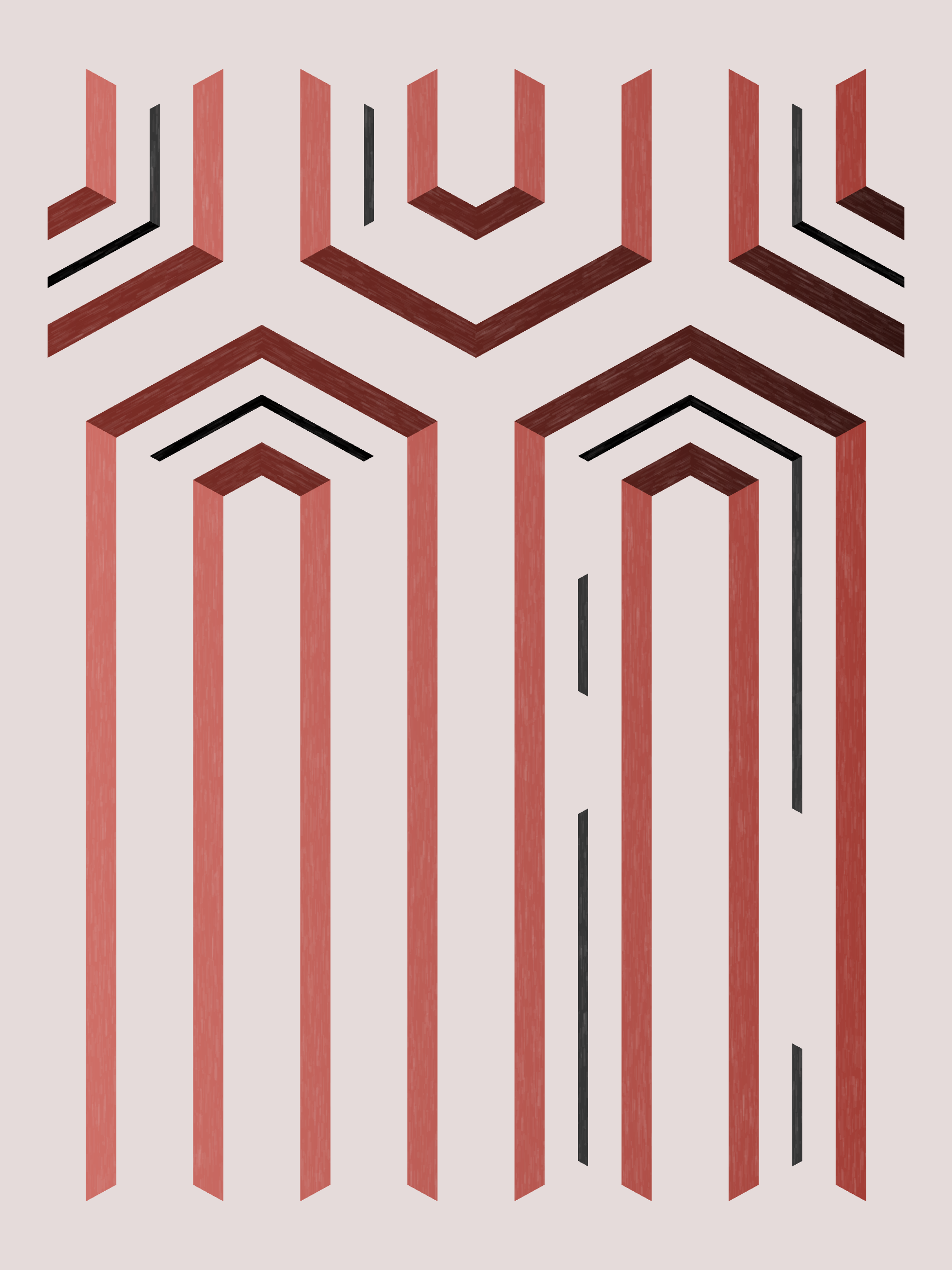 Lines are bent and shaded. There are no wrong turns. [Interaction in live view: press 1-7 or left/right arrow keys to see the stages of sketch construction: 1-grid, 2-divide, 3-tile, 4-bend, 5-shade, 6-color, 7-texture]