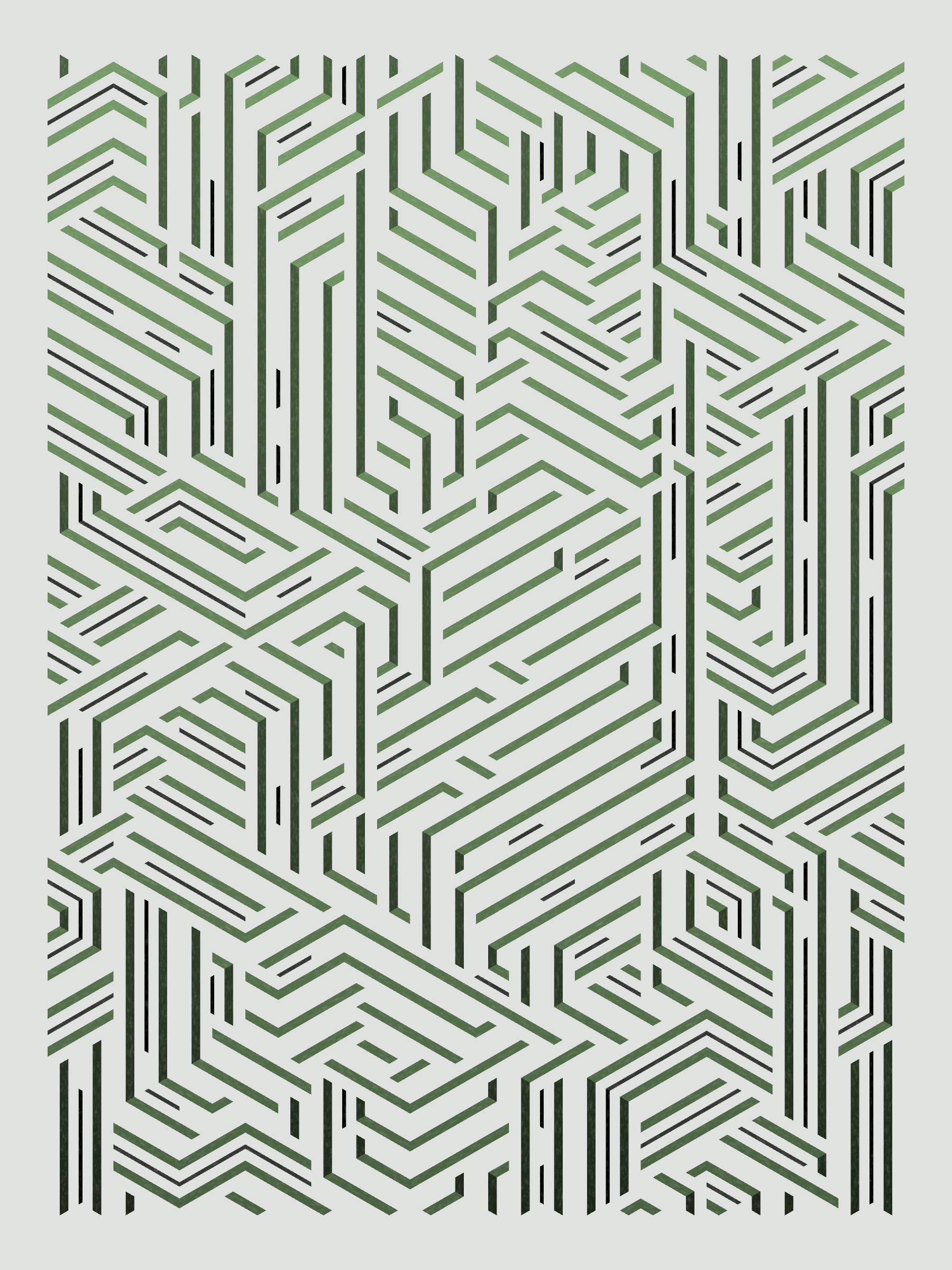 Lines are bent and shaded. There are no wrong turns. [Interaction in live view: press 1-7 or left/right arrow keys to see the stages of sketch construction: 1-grid, 2-divide, 3-tile, 4-bend, 5-shade, 6-color, 7-texture]