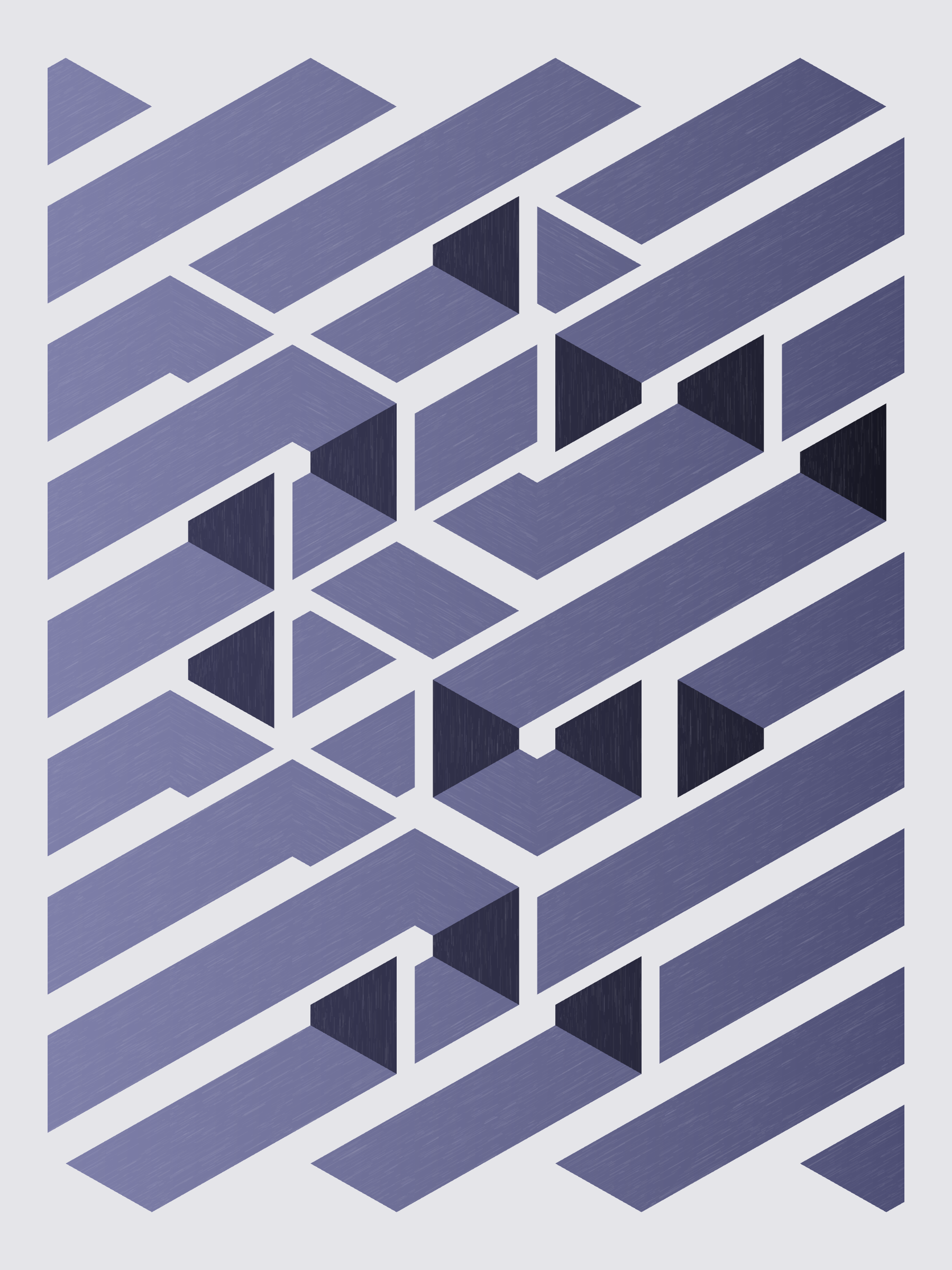 Lines are bent and shaded. There are no wrong turns. [Interaction in live view: press 1-7 or left/right arrow keys to see the stages of sketch construction: 1-grid, 2-divide, 3-tile, 4-bend, 5-shade, 6-color, 7-texture]