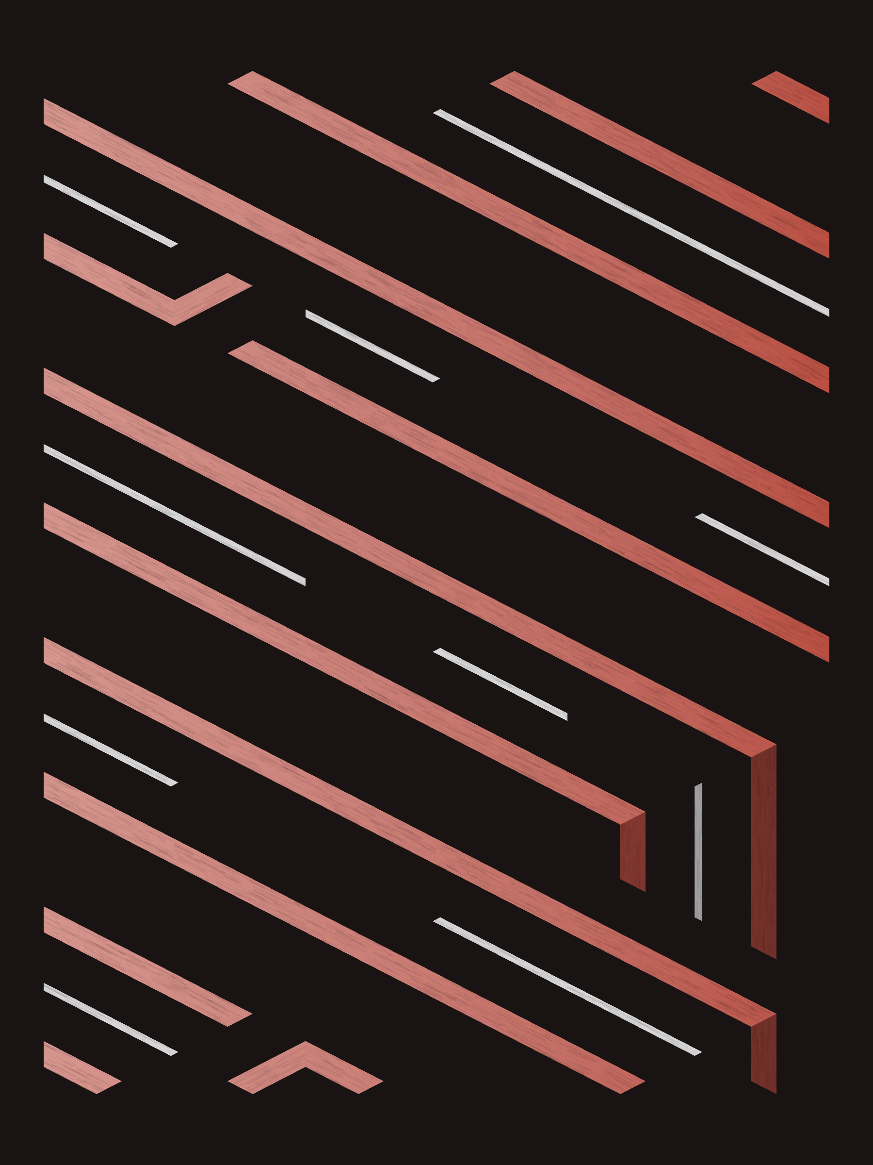 Lines are bent and shaded. There are no wrong turns. [Interaction in live view: press 1-7 or left/right arrow keys to see the stages of sketch construction: 1-grid, 2-divide, 3-tile, 4-bend, 5-shade, 6-color, 7-texture]