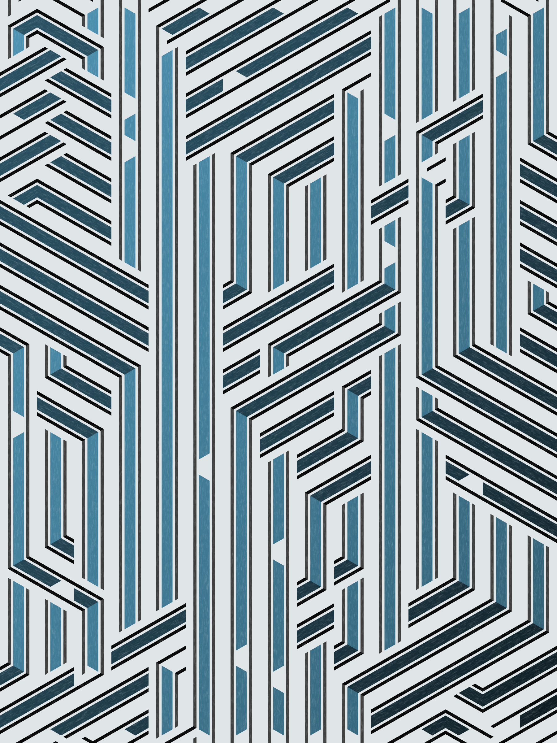 Lines are bent and shaded. There are no wrong turns. [Interaction in live view: press 1-7 or left/right arrow keys to see the stages of sketch construction: 1-grid, 2-divide, 3-tile, 4-bend, 5-shade, 6-color, 7-texture]