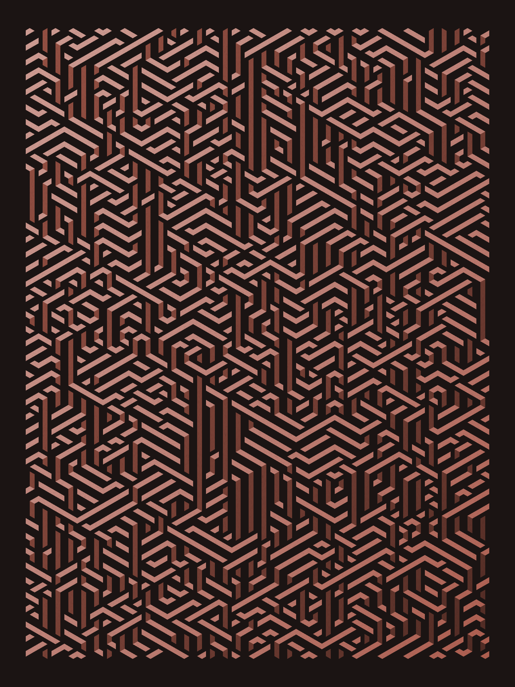 Lines are bent and shaded. There are no wrong turns. [Interaction in live view: press 1-7 or left/right arrow keys to see the stages of sketch construction: 1-grid, 2-divide, 3-tile, 4-bend, 5-shade, 6-color, 7-texture]