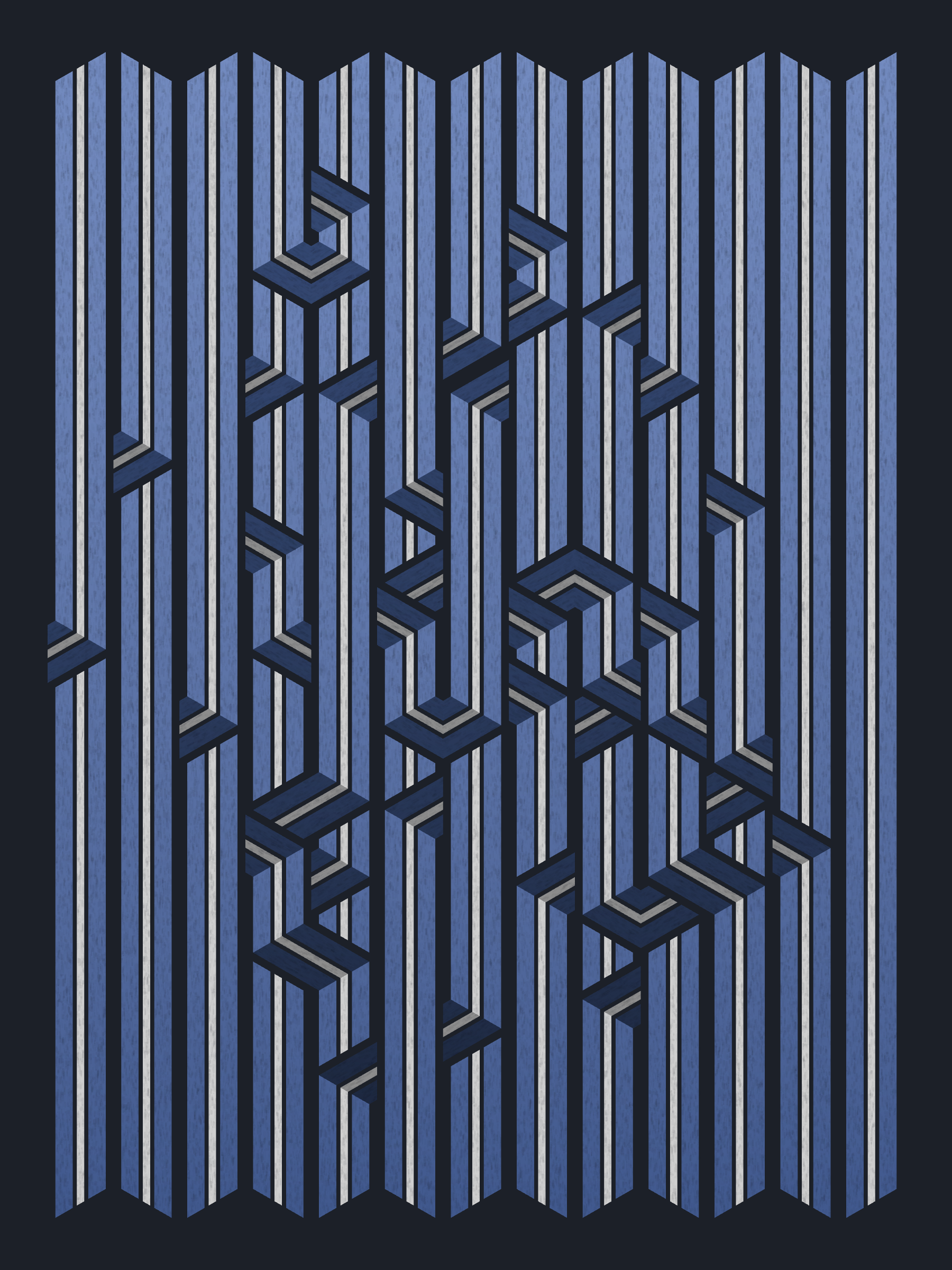 Lines are bent and shaded. There are no wrong turns. [Interaction in live view: press 1-7 or left/right arrow keys to see the stages of sketch construction: 1-grid, 2-divide, 3-tile, 4-bend, 5-shade, 6-color, 7-texture]
