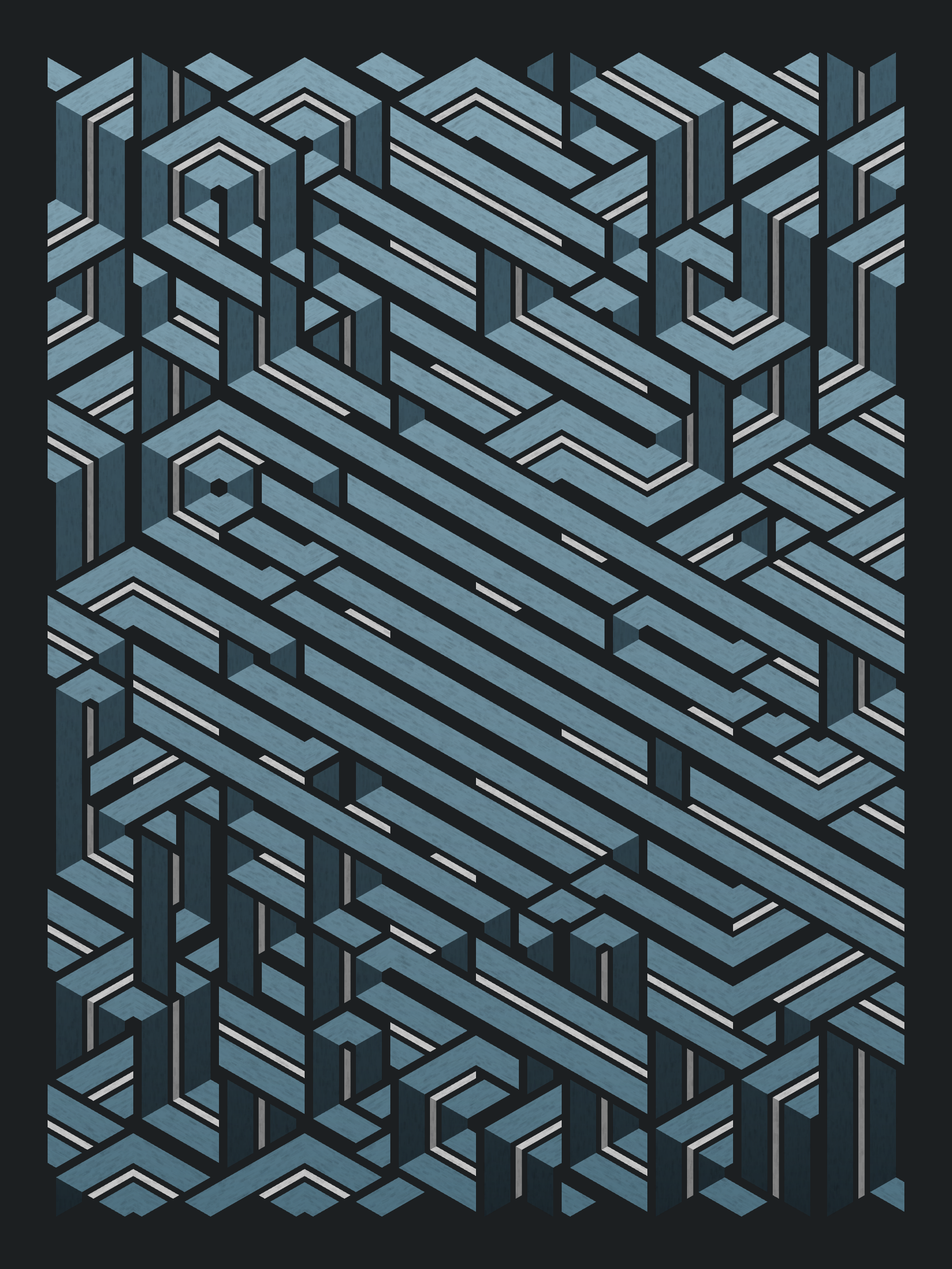 Lines are bent and shaded. There are no wrong turns. [Interaction in live view: press 1-7 or left/right arrow keys to see the stages of sketch construction: 1-grid, 2-divide, 3-tile, 4-bend, 5-shade, 6-color, 7-texture]