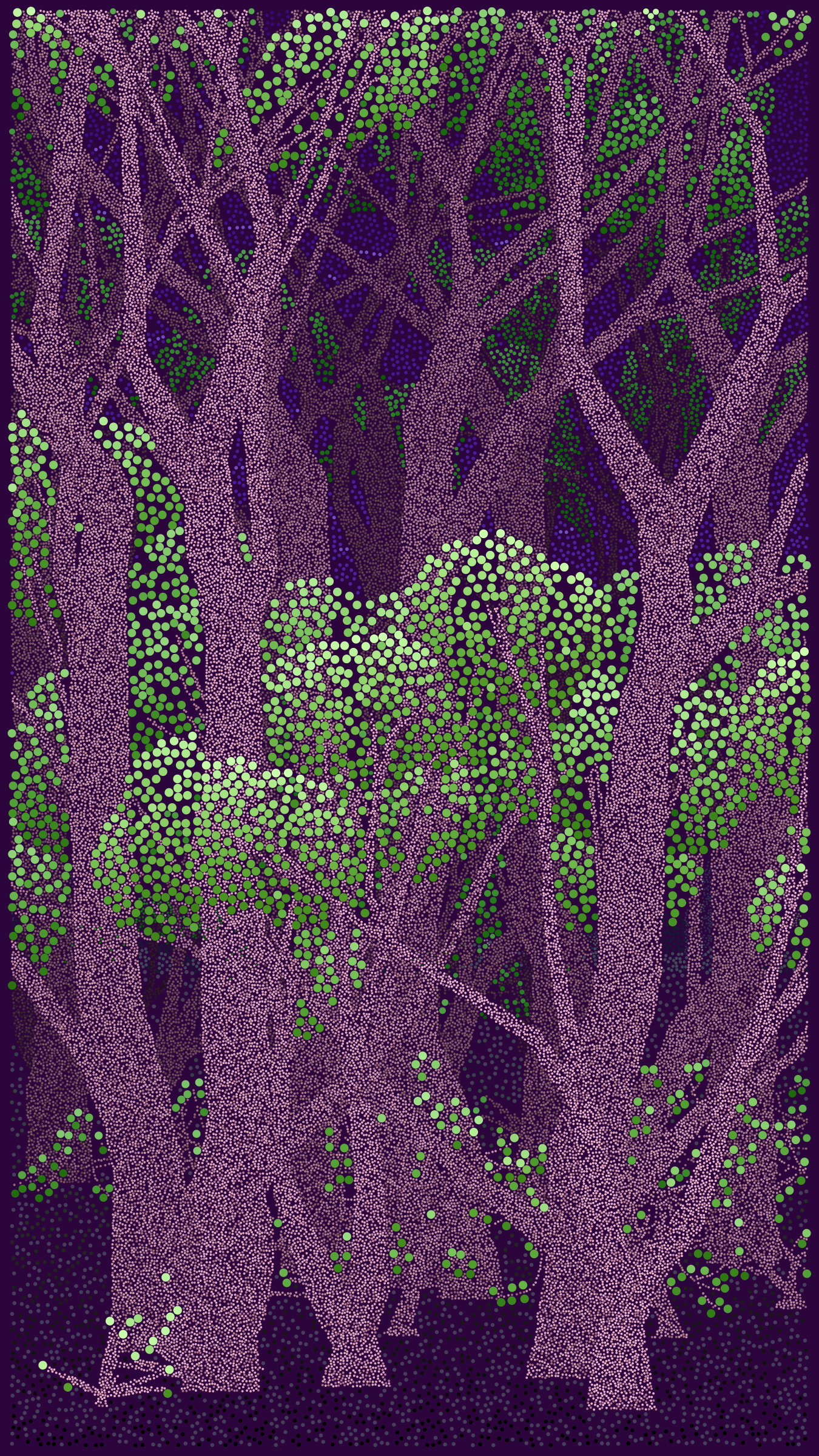 Bosque de Chapultepec is all about how computers can be used as a form of expression. It explores how a generative art algorithm can be used to make something beautiful that is unique to a particular place and time. Bosque de Chapultepec debuted at NFT ART CDMX in 2022, a four day celebration of generative art in Mexico City.