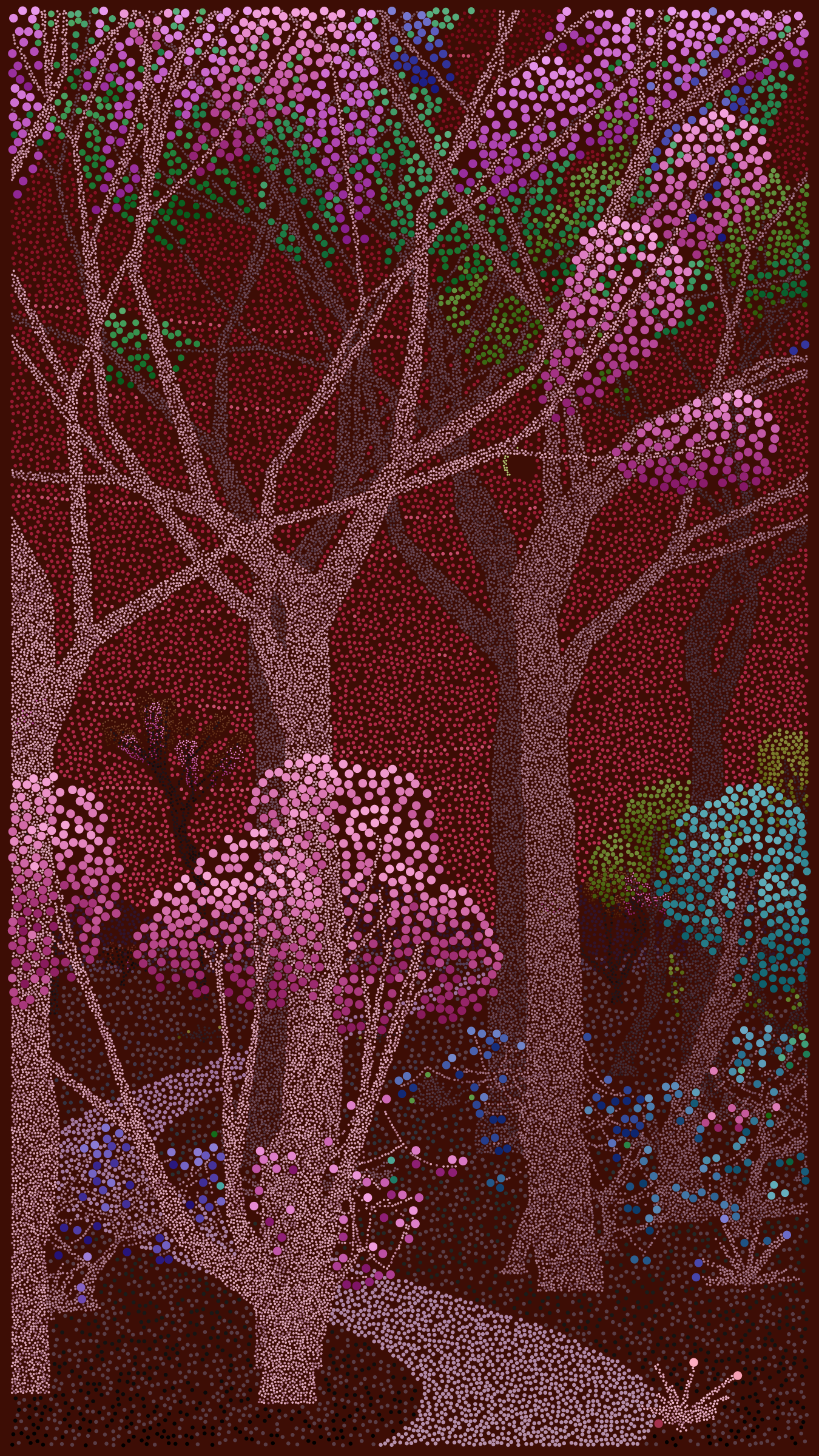 Bosque de Chapultepec is all about how computers can be used as a form of expression. It explores how a generative art algorithm can be used to make something beautiful that is unique to a particular place and time. Bosque de Chapultepec debuted at NFT ART CDMX in 2022, a four day celebration of generative art in Mexico City.