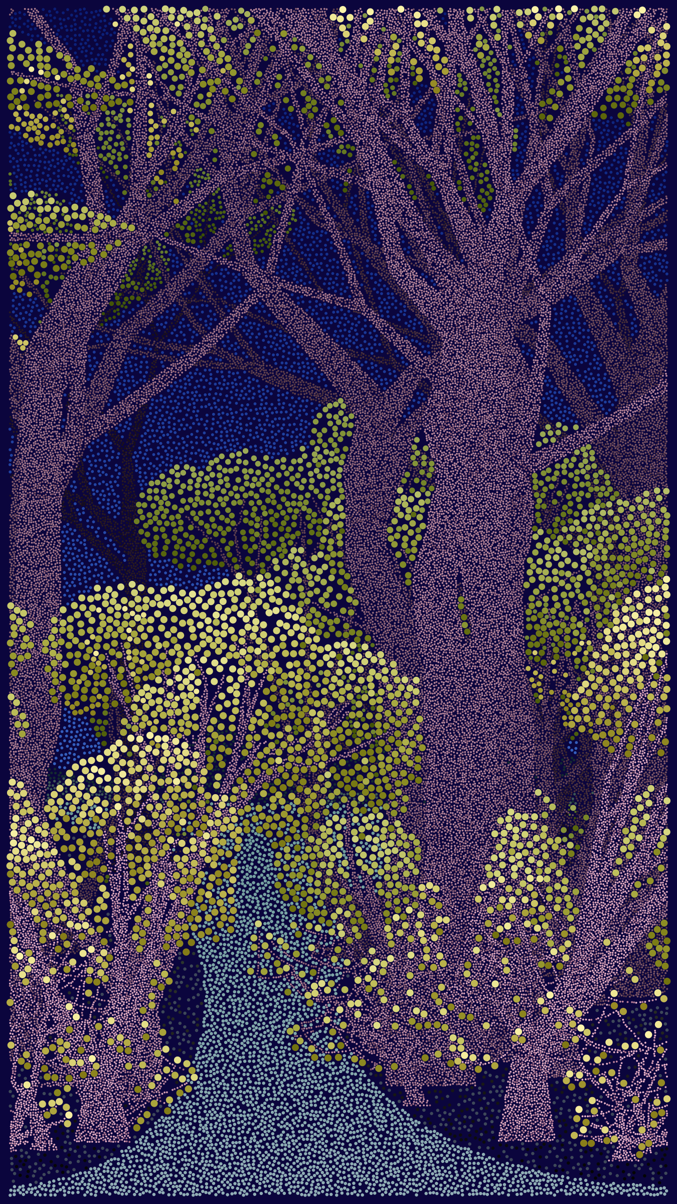 Bosque de Chapultepec is all about how computers can be used as a form of expression. It explores how a generative art algorithm can be used to make something beautiful that is unique to a particular place and time. Bosque de Chapultepec debuted at NFT ART CDMX in 2022, a four day celebration of generative art in Mexico City.