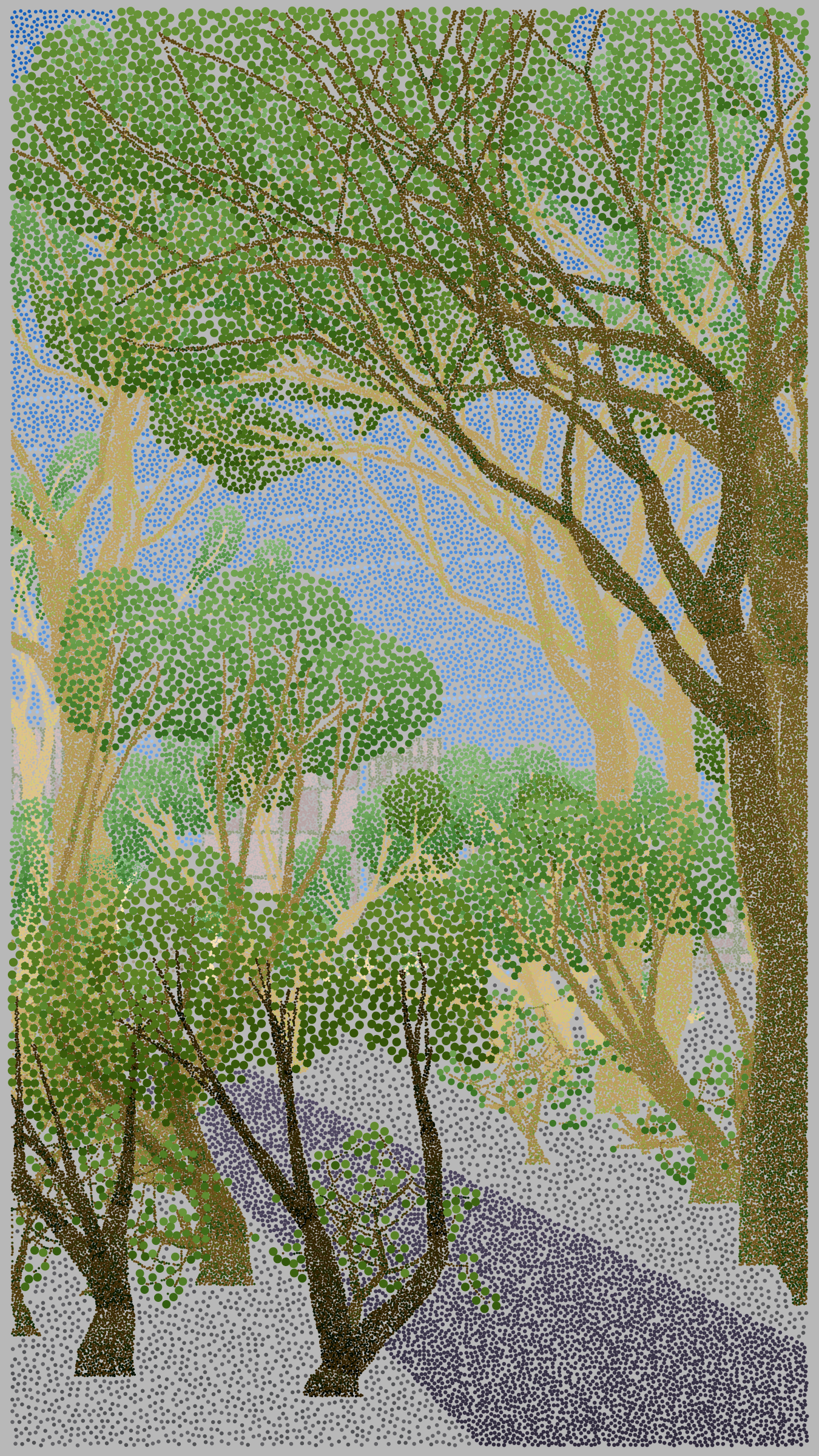 Bosque de Chapultepec is all about how computers can be used as a form of expression. It explores how a generative art algorithm can be used to make something beautiful that is unique to a particular place and time. Bosque de Chapultepec debuted at NFT ART CDMX in 2022, a four day celebration of generative art in Mexico City.
