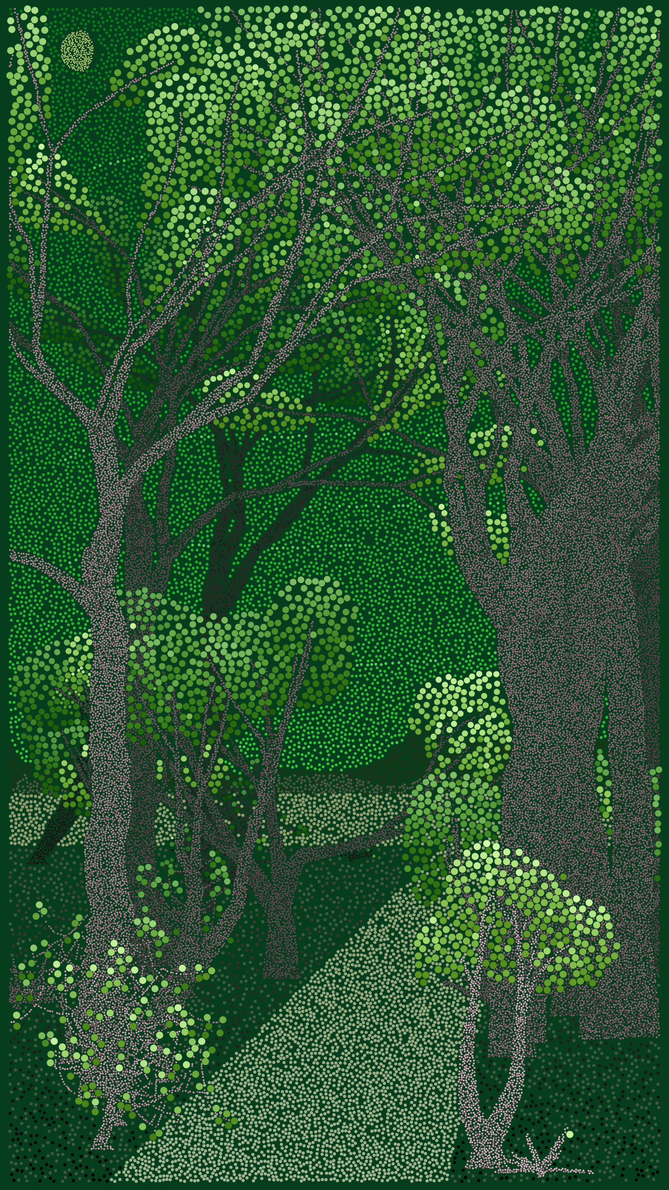 Bosque de Chapultepec is all about how computers can be used as a form of expression. It explores how a generative art algorithm can be used to make something beautiful that is unique to a particular place and time. Bosque de Chapultepec debuted at NFT ART CDMX in 2022, a four day celebration of generative art in Mexico City.