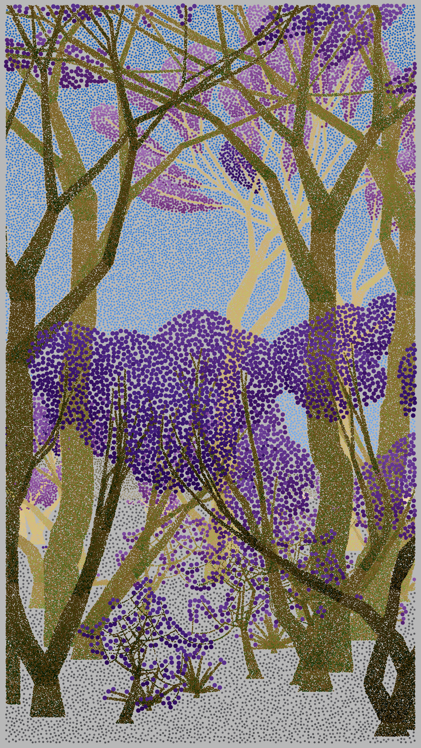 Bosque de Chapultepec is all about how computers can be used as a form of expression. It explores how a generative art algorithm can be used to make something beautiful that is unique to a particular place and time. Bosque de Chapultepec debuted at NFT ART CDMX in 2022, a four day celebration of generative art in Mexico City.