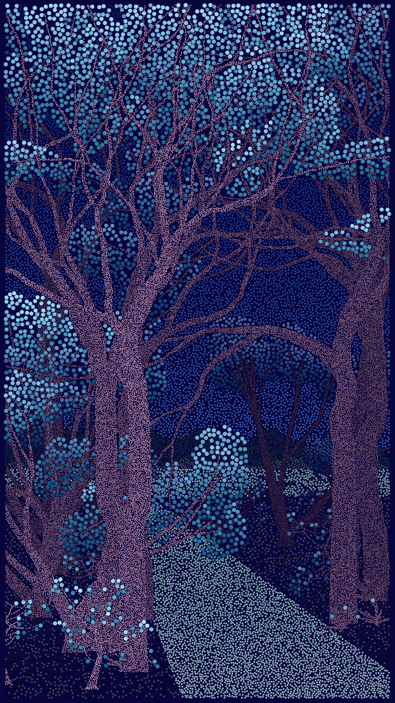 Bosque de Chapultepec is all about how computers can be used as a form of expression. It explores how a generative art algorithm can be used to make something beautiful that is unique to a particular place and time. Bosque de Chapultepec debuted at NFT ART CDMX in 2022, a four day celebration of generative art in Mexico City.