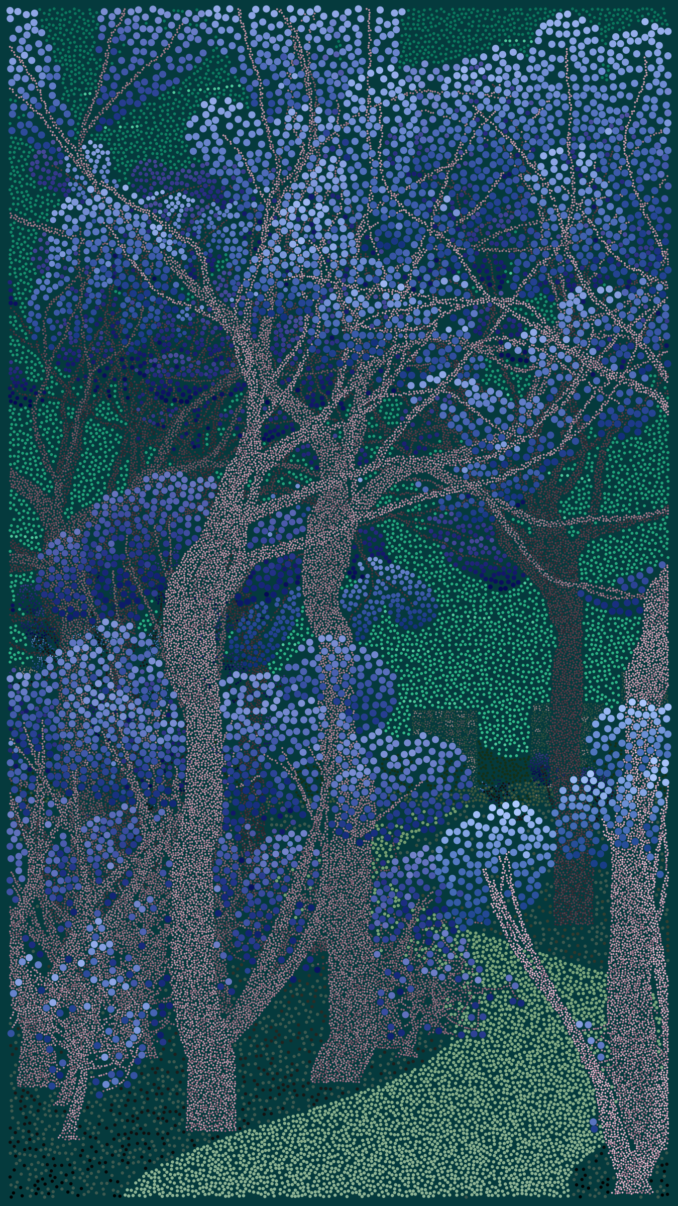 Bosque de Chapultepec is all about how computers can be used as a form of expression. It explores how a generative art algorithm can be used to make something beautiful that is unique to a particular place and time. Bosque de Chapultepec debuted at NFT ART CDMX in 2022, a four day celebration of generative art in Mexico City.