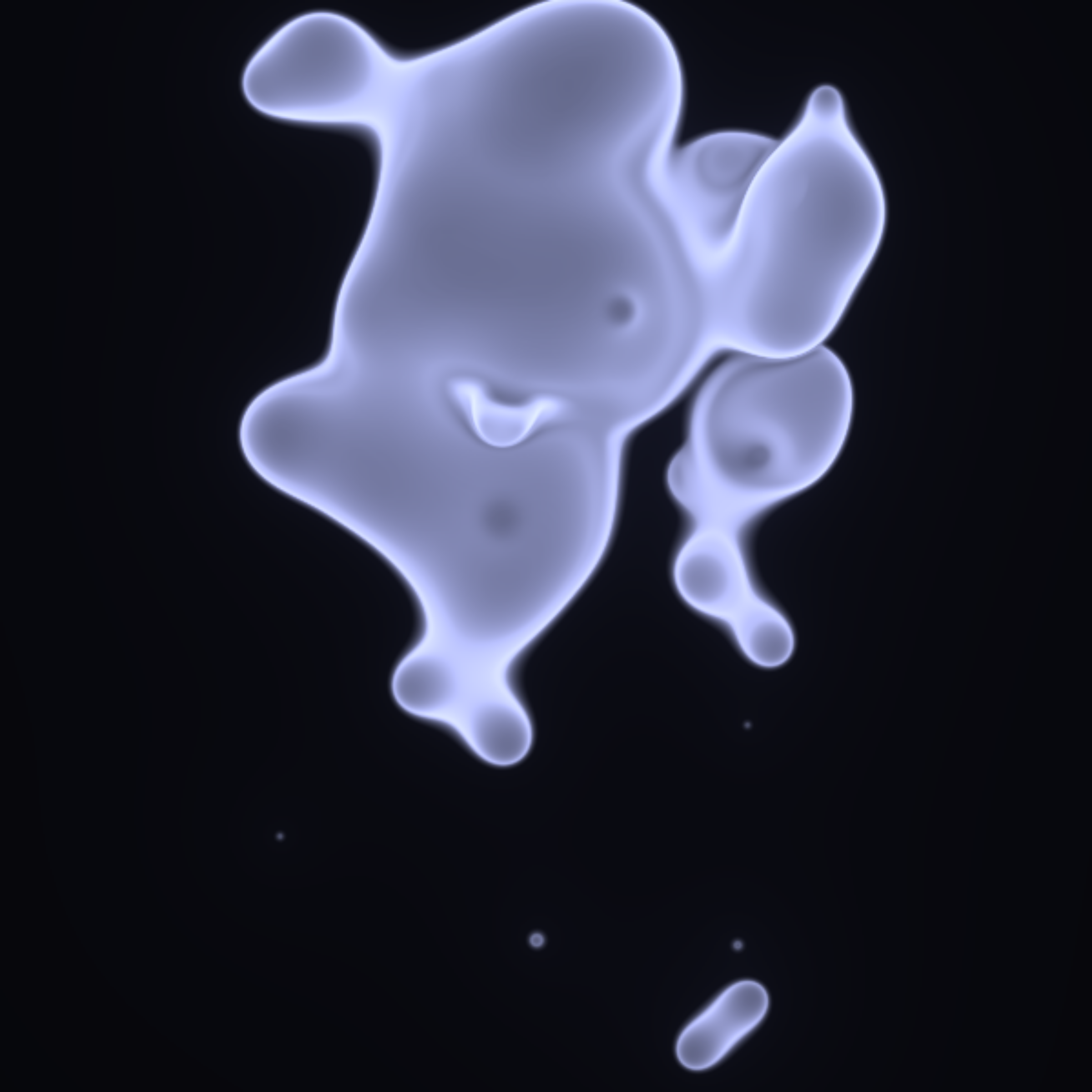 Translucent color bubbles playfully mix and morph to create organic and ephemeral blobby forms. [Shortcuts] spacebar: pause/resume, s: save screenshot, 1→5: high→low resolution. If needed, please adjust resolution or window size for optimal performance.