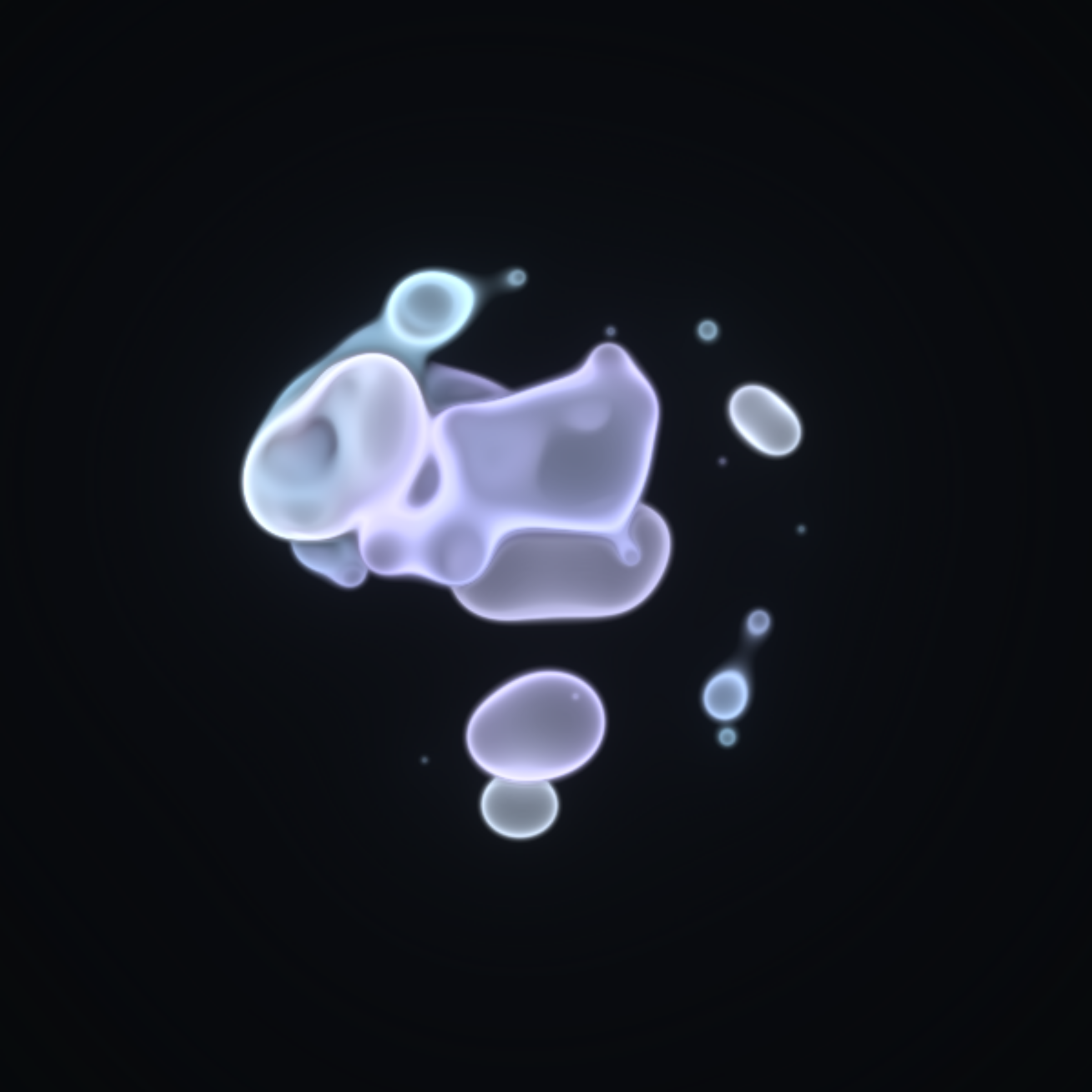Translucent color bubbles playfully mix and morph to create organic and ephemeral blobby forms. [Shortcuts] spacebar: pause/resume, s: save screenshot, 1→5: high→low resolution. If needed, please adjust resolution or window size for optimal performance.
