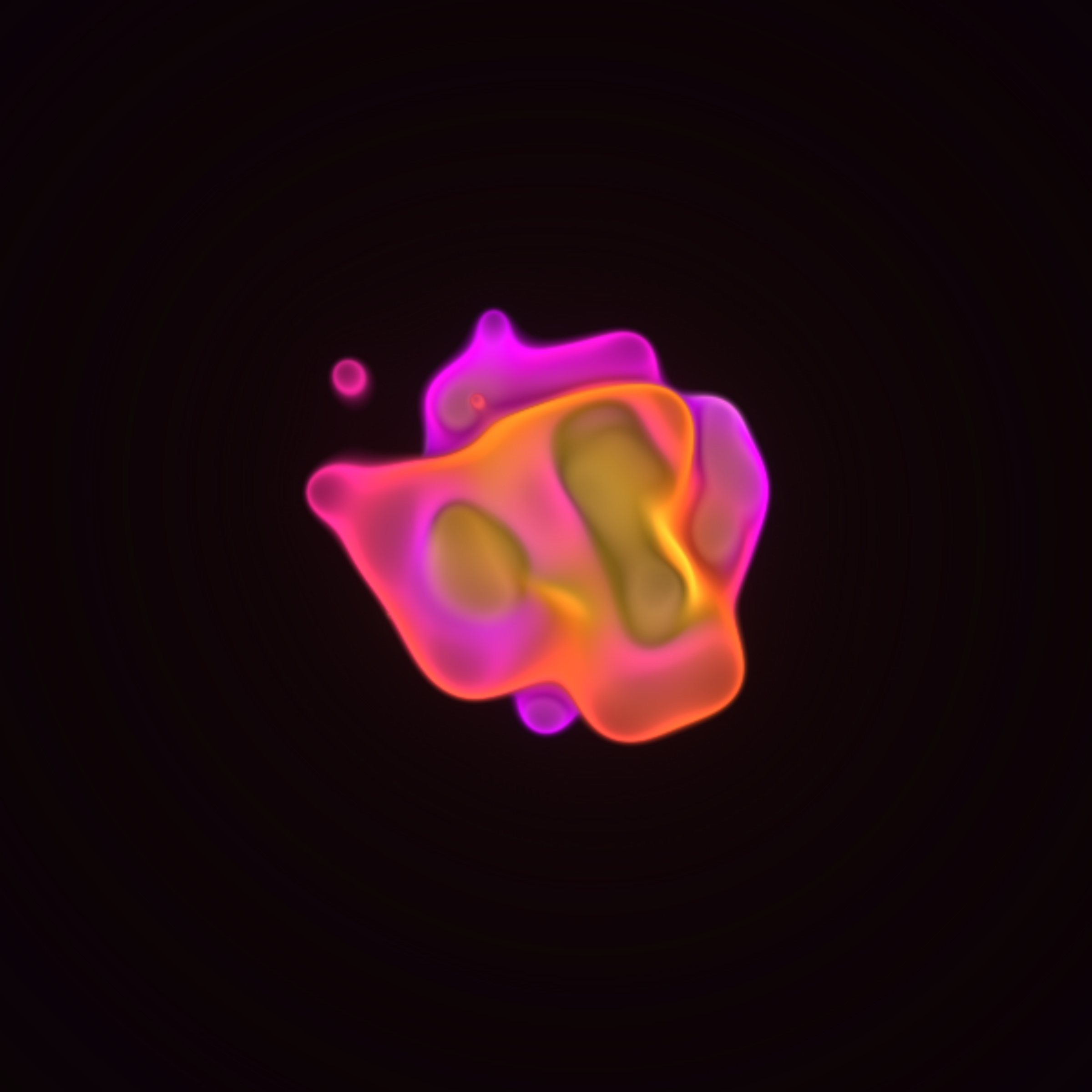 Translucent color bubbles playfully mix and morph to create organic and ephemeral blobby forms. [Shortcuts] spacebar: pause/resume, s: save screenshot, 1→5: high→low resolution. If needed, please adjust resolution or window size for optimal performance.