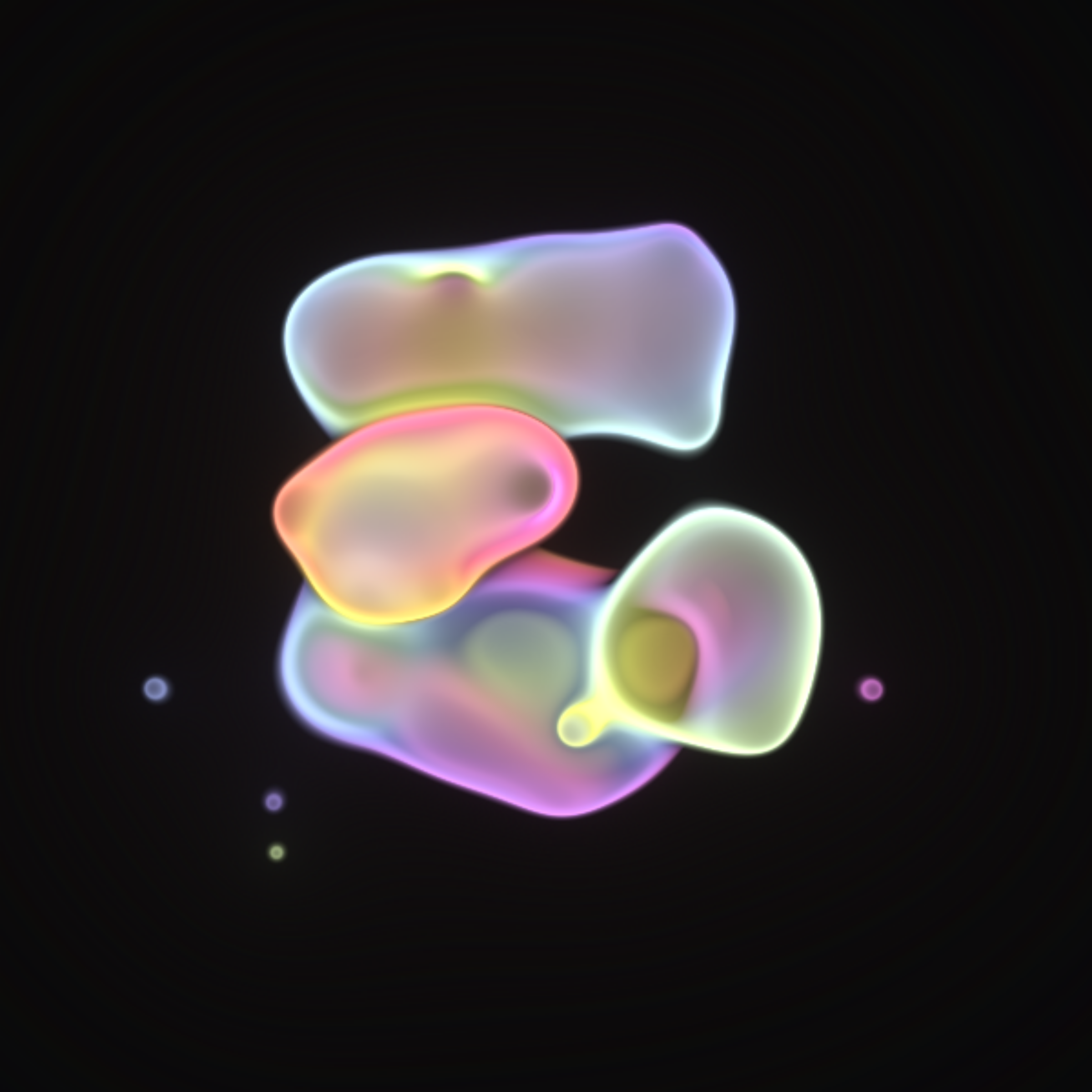 Translucent color bubbles playfully mix and morph to create organic and ephemeral blobby forms. [Shortcuts] spacebar: pause/resume, s: save screenshot, 1→5: high→low resolution. If needed, please adjust resolution or window size for optimal performance.