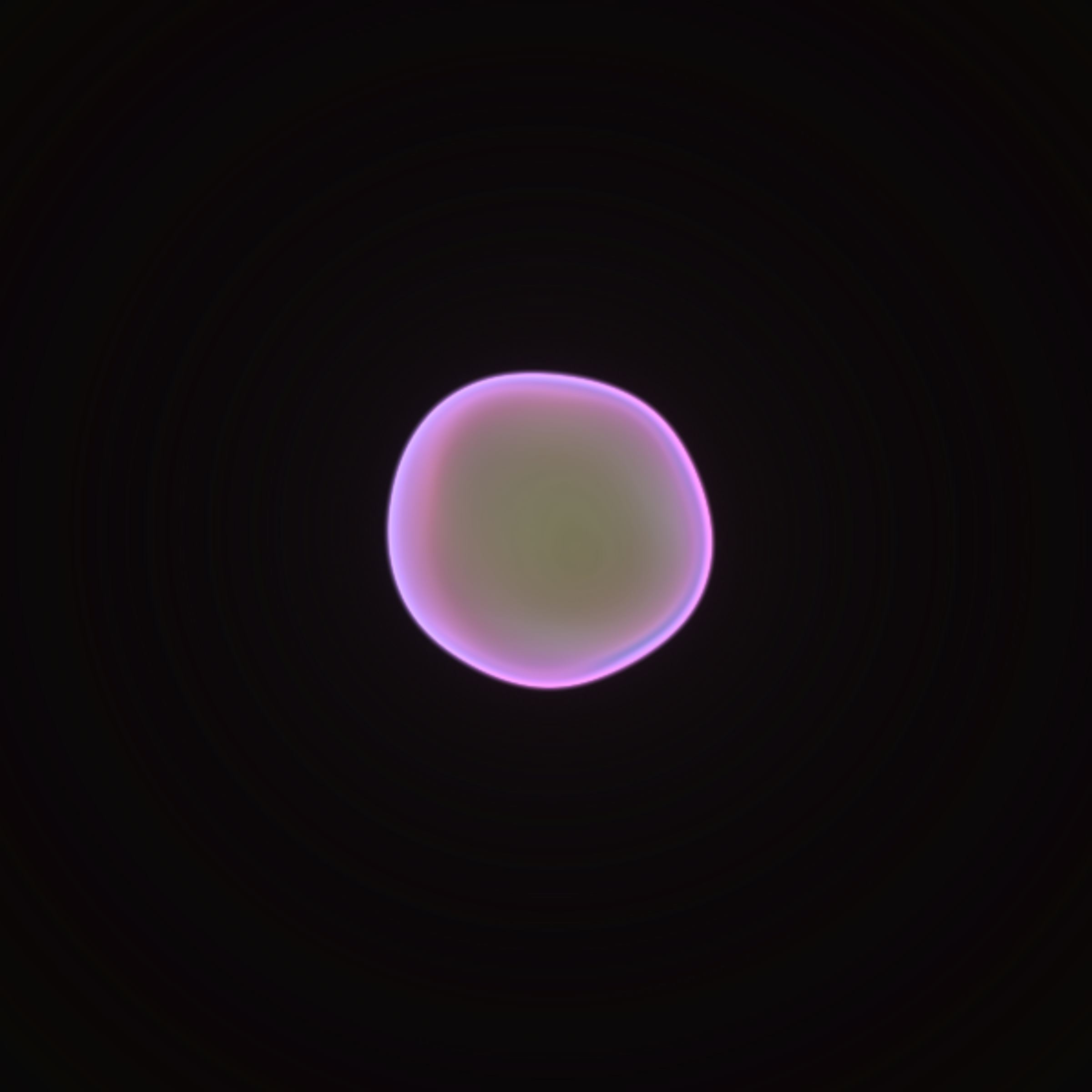Translucent color bubbles playfully mix and morph to create organic and ephemeral blobby forms. [Shortcuts] spacebar: pause/resume, s: save screenshot, 1→5: high→low resolution. If needed, please adjust resolution or window size for optimal performance.