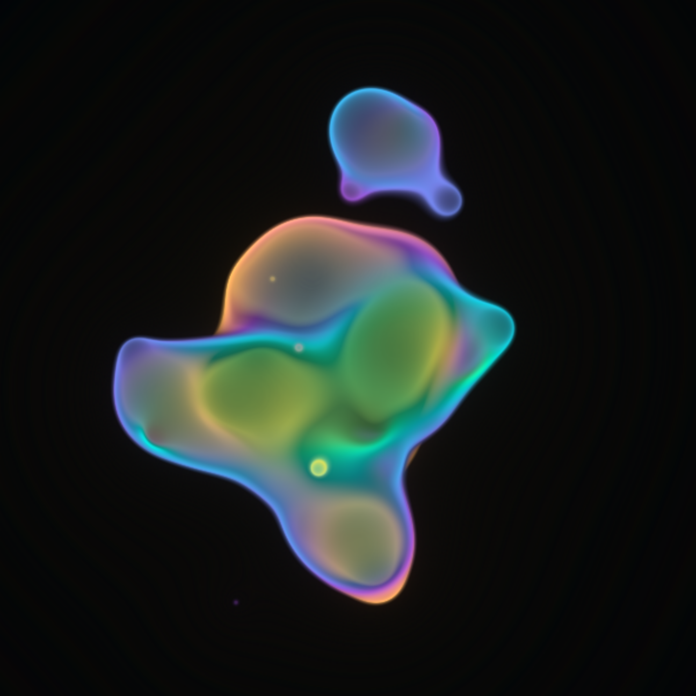 Translucent color bubbles playfully mix and morph to create organic and ephemeral blobby forms. [Shortcuts] spacebar: pause/resume, s: save screenshot, 1→5: high→low resolution. If needed, please adjust resolution or window size for optimal performance.