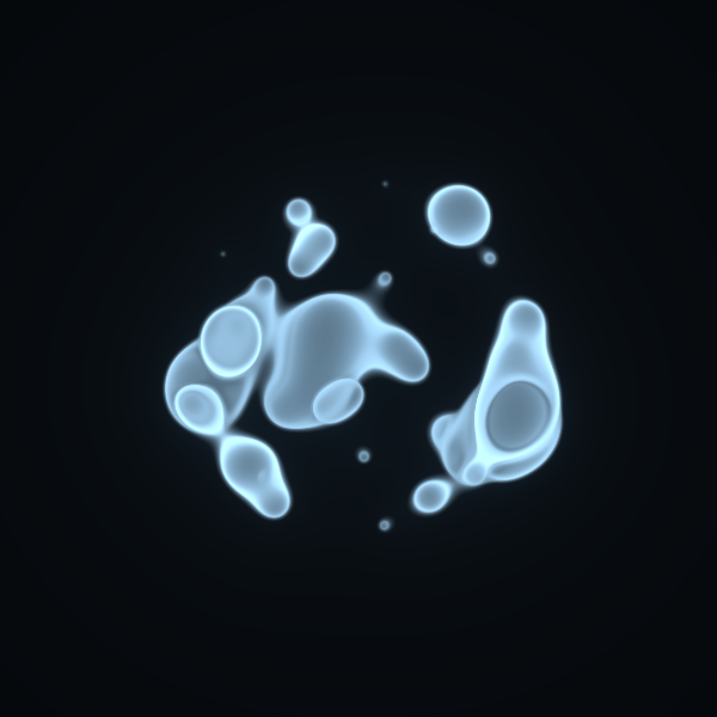 Translucent color bubbles playfully mix and morph to create organic and ephemeral blobby forms. [Shortcuts] spacebar: pause/resume, s: save screenshot, 1→5: high→low resolution. If needed, please adjust resolution or window size for optimal performance.
