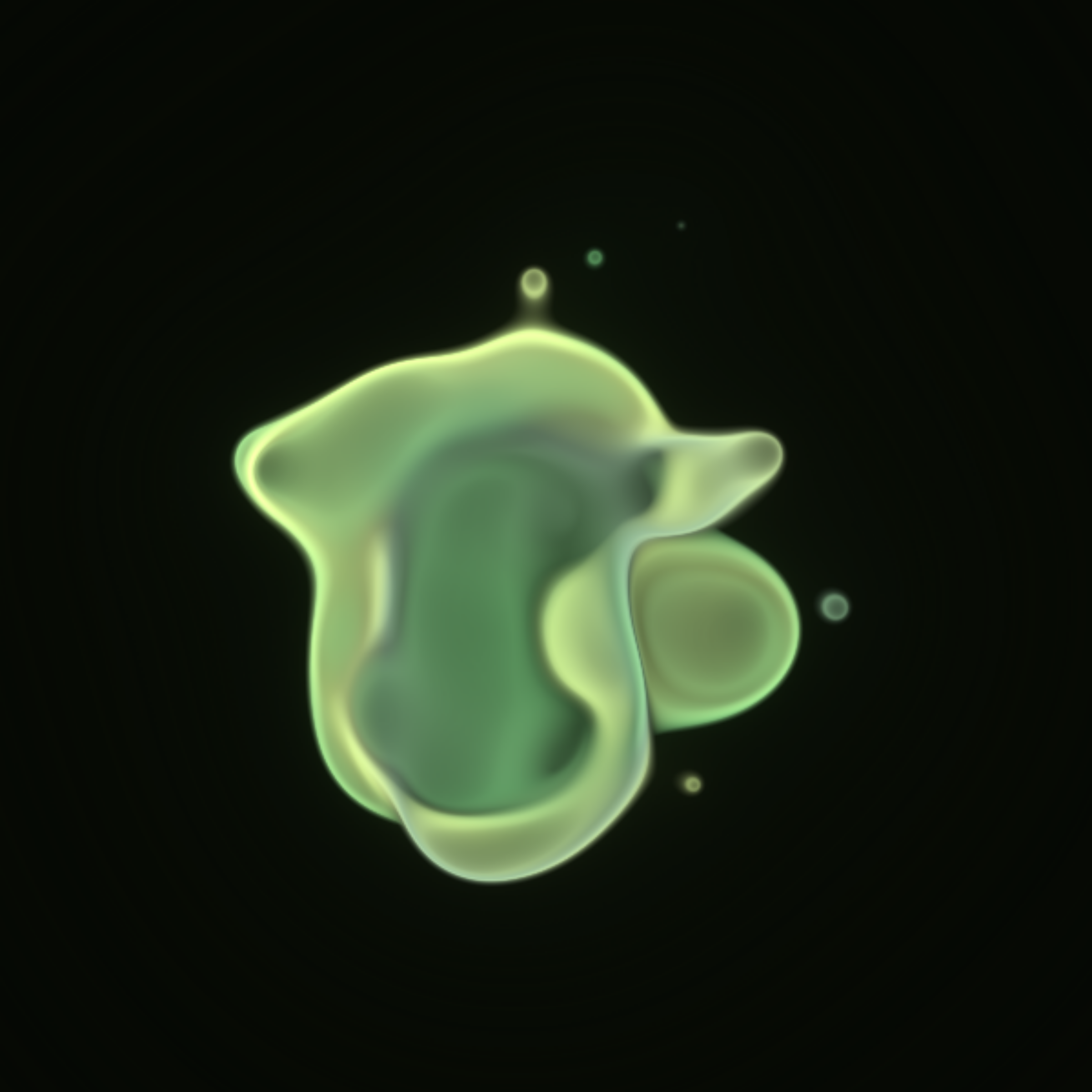 Translucent color bubbles playfully mix and morph to create organic and ephemeral blobby forms. [Shortcuts] spacebar: pause/resume, s: save screenshot, 1→5: high→low resolution. If needed, please adjust resolution or window size for optimal performance.