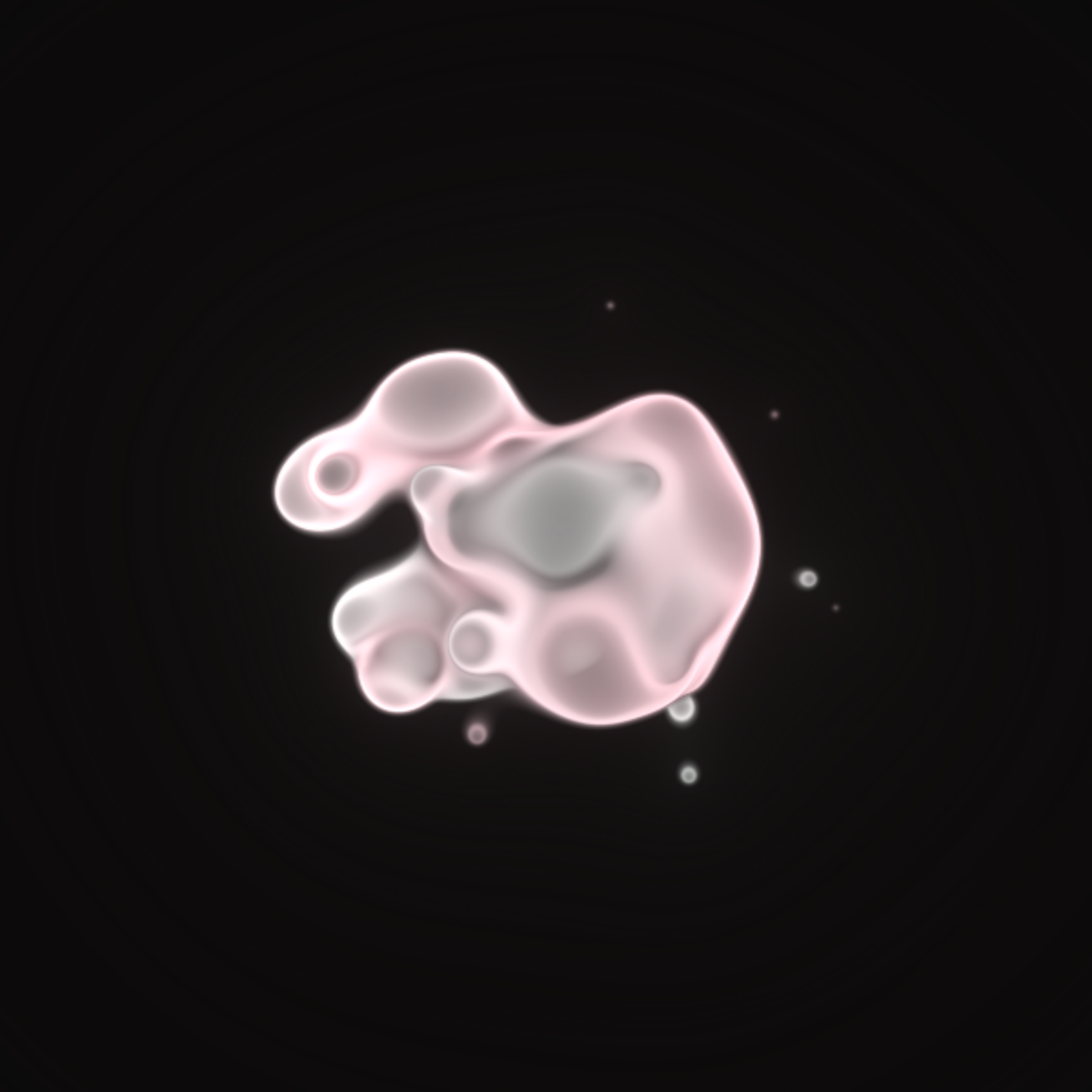 Translucent color bubbles playfully mix and morph to create organic and ephemeral blobby forms. [Shortcuts] spacebar: pause/resume, s: save screenshot, 1→5: high→low resolution. If needed, please adjust resolution or window size for optimal performance.