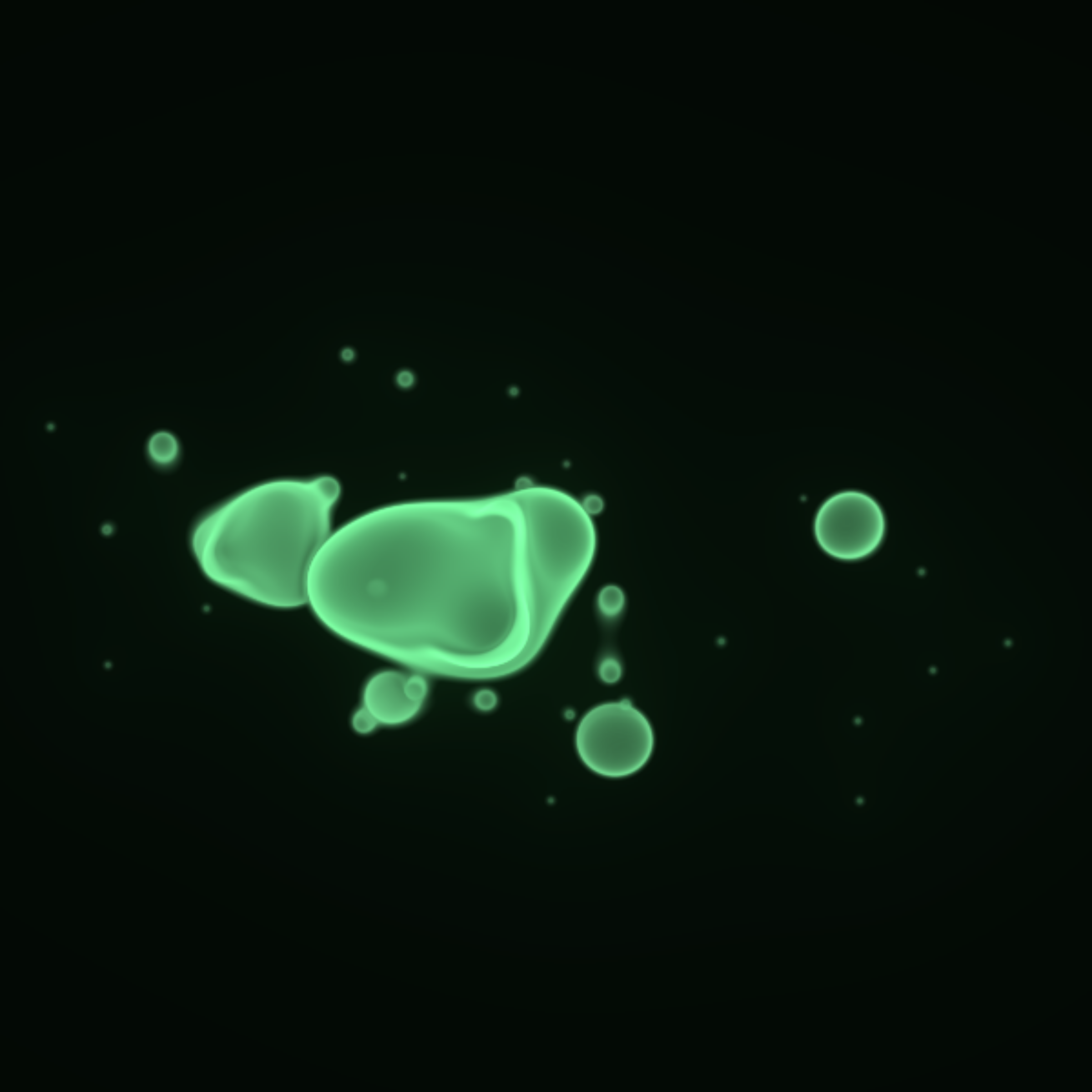Translucent color bubbles playfully mix and morph to create organic and ephemeral blobby forms. [Shortcuts] spacebar: pause/resume, s: save screenshot, 1→5: high→low resolution. If needed, please adjust resolution or window size for optimal performance.