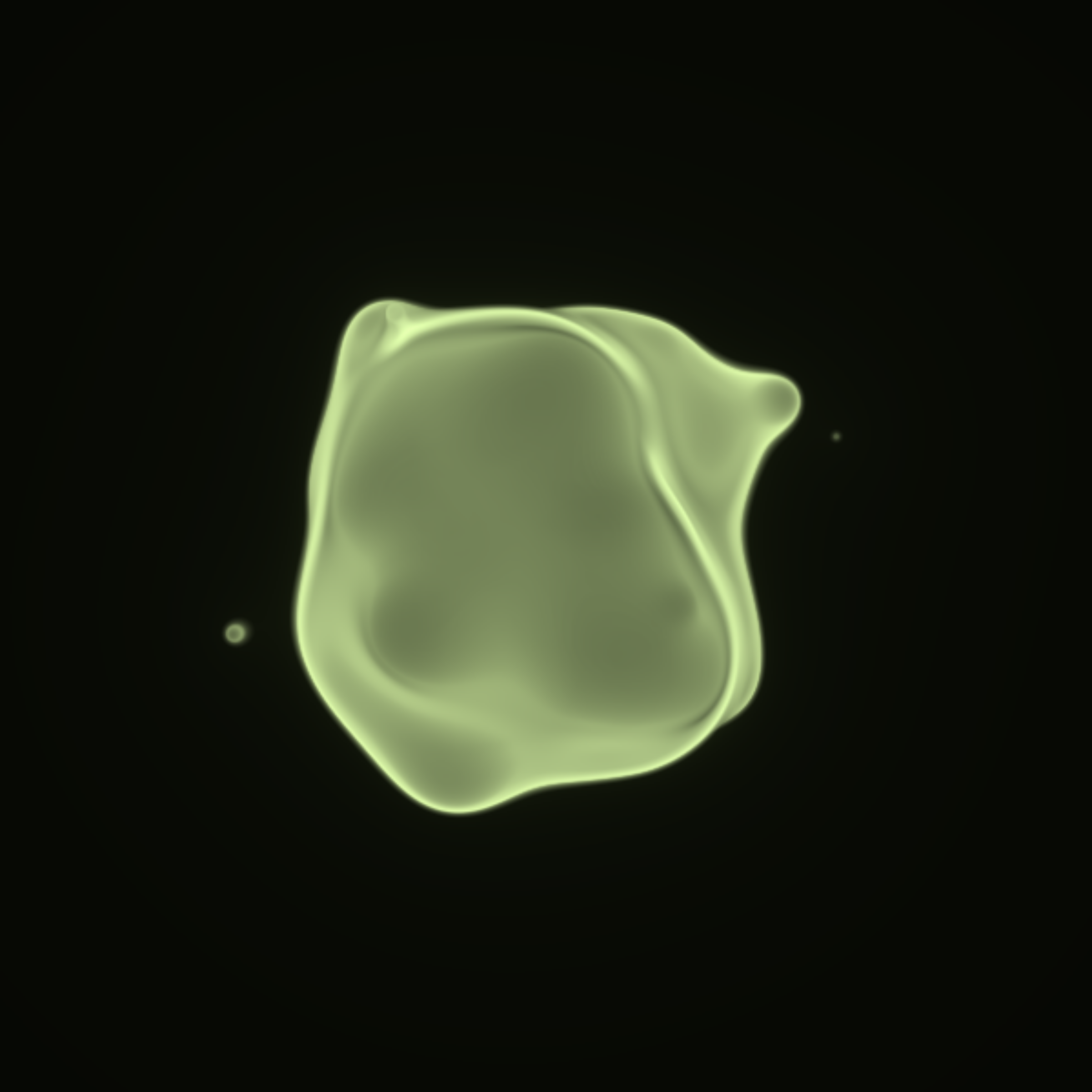 Translucent color bubbles playfully mix and morph to create organic and ephemeral blobby forms. [Shortcuts] spacebar: pause/resume, s: save screenshot, 1→5: high→low resolution. If needed, please adjust resolution or window size for optimal performance.