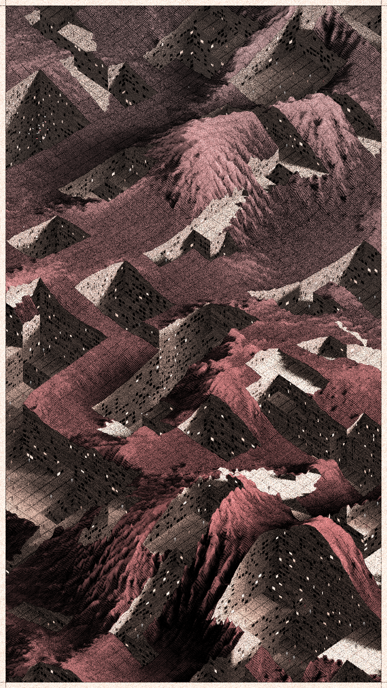 Cantera is a project that brings these stories to a non-physical, generative space. It replaces atoms of stone and soil with digital bits. It draws landscapes inspired by the imagery of Basque stone quarries and iron mines and writes narratives about non-existent habitats where the boundaries between extraction, shelter, and natural forms become indistinct.