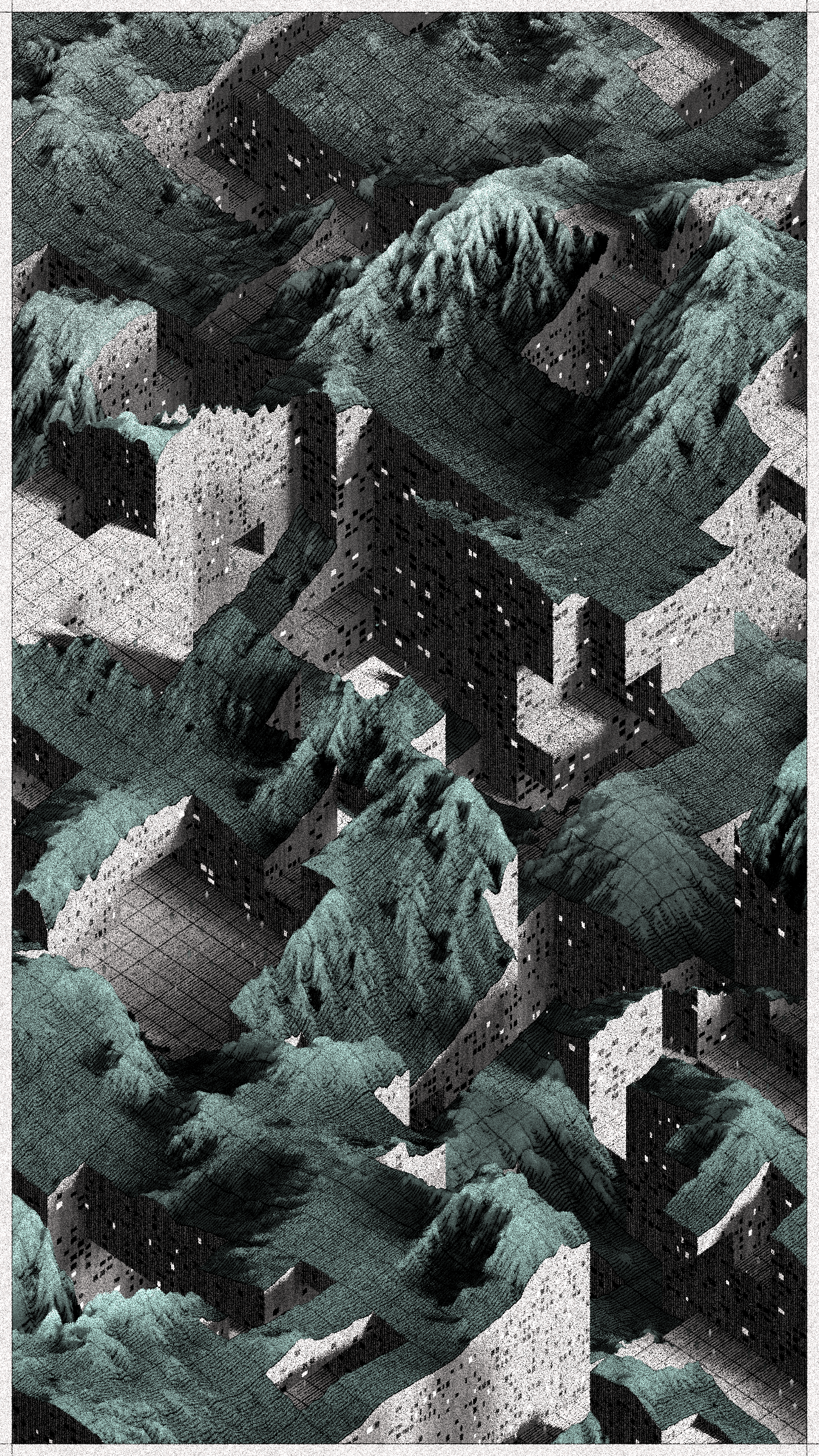 Cantera is a project that brings these stories to a non-physical, generative space. It replaces atoms of stone and soil with digital bits. It draws landscapes inspired by the imagery of Basque stone quarries and iron mines and writes narratives about non-existent habitats where the boundaries between extraction, shelter, and natural forms become indistinct.