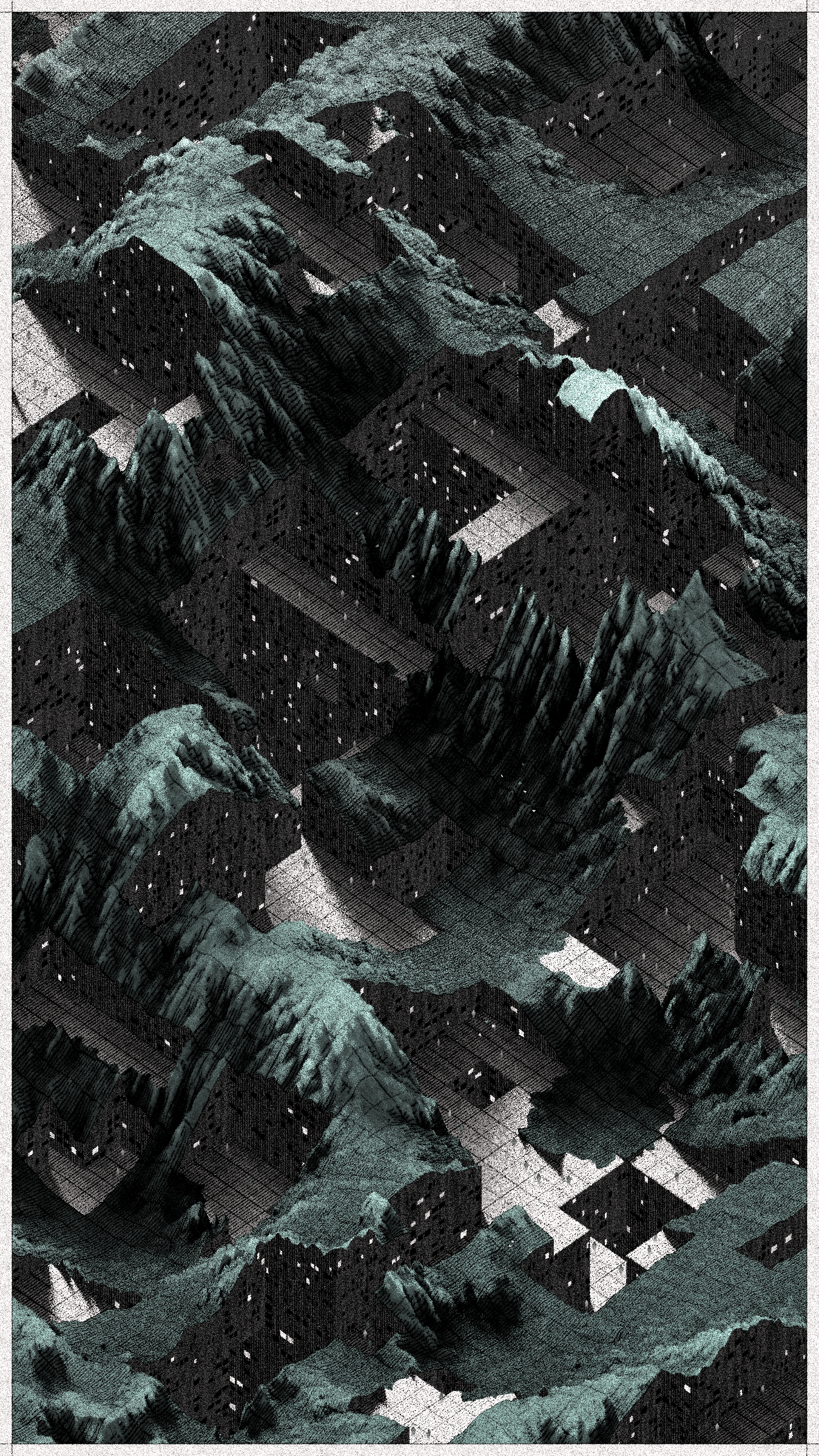 Cantera is a project that brings these stories to a non-physical, generative space. It replaces atoms of stone and soil with digital bits. It draws landscapes inspired by the imagery of Basque stone quarries and iron mines and writes narratives about non-existent habitats where the boundaries between extraction, shelter, and natural forms become indistinct.