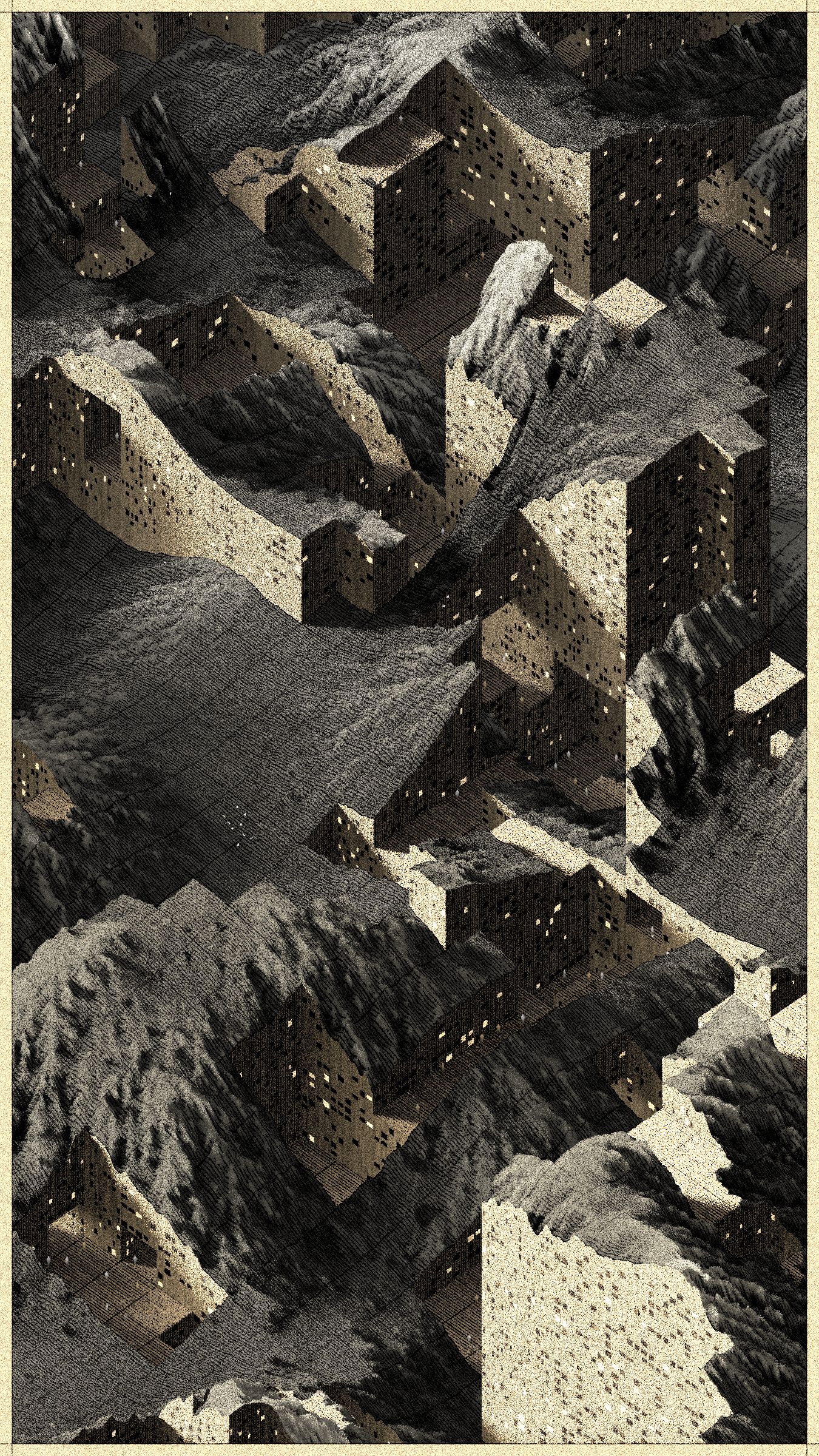 Cantera is a project that brings these stories to a non-physical, generative space. It replaces atoms of stone and soil with digital bits. It draws landscapes inspired by the imagery of Basque stone quarries and iron mines and writes narratives about non-existent habitats where the boundaries between extraction, shelter, and natural forms become indistinct.
