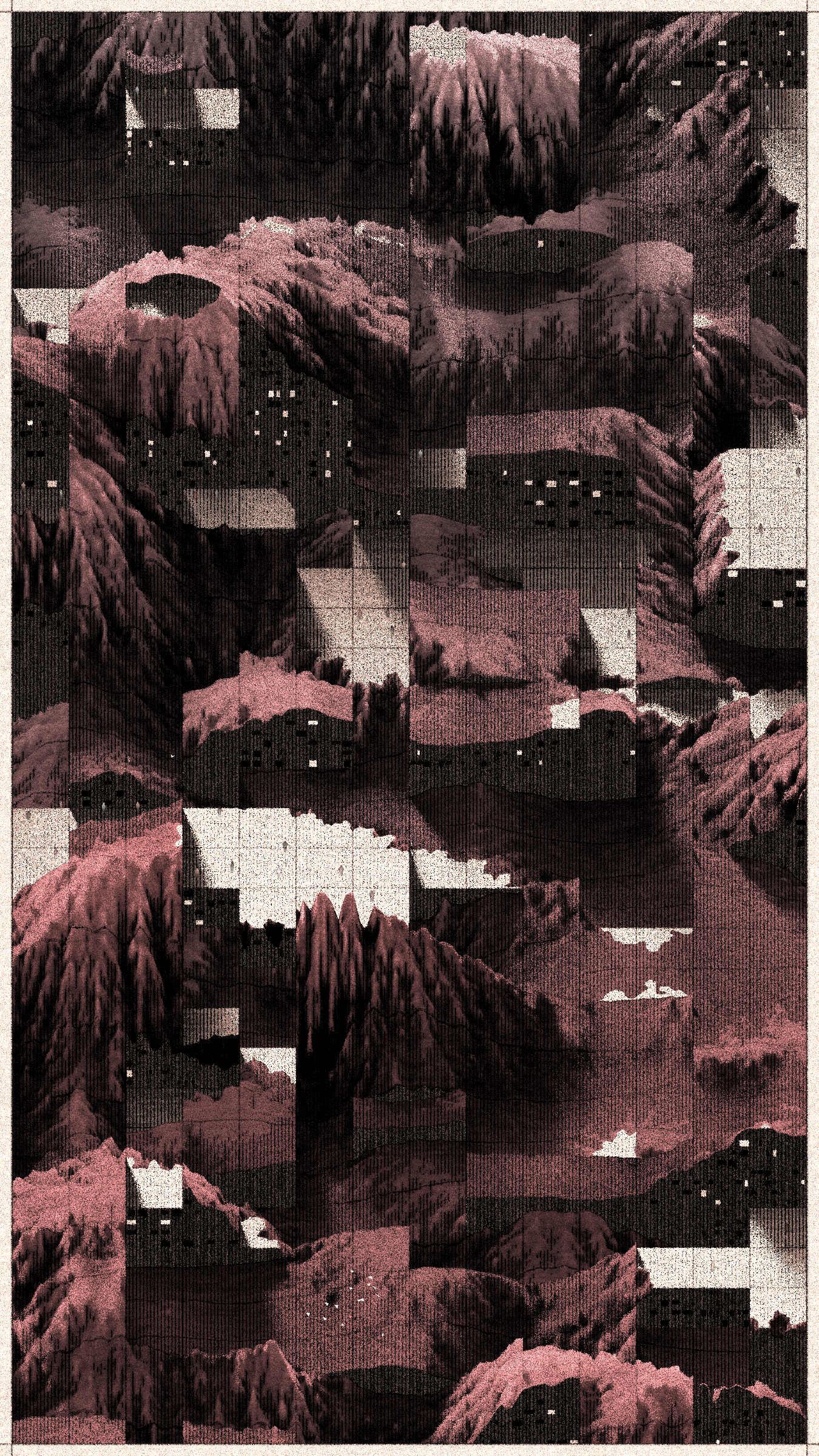 Cantera is a project that brings these stories to a non-physical, generative space. It replaces atoms of stone and soil with digital bits. It draws landscapes inspired by the imagery of Basque stone quarries and iron mines and writes narratives about non-existent habitats where the boundaries between extraction, shelter, and natural forms become indistinct.