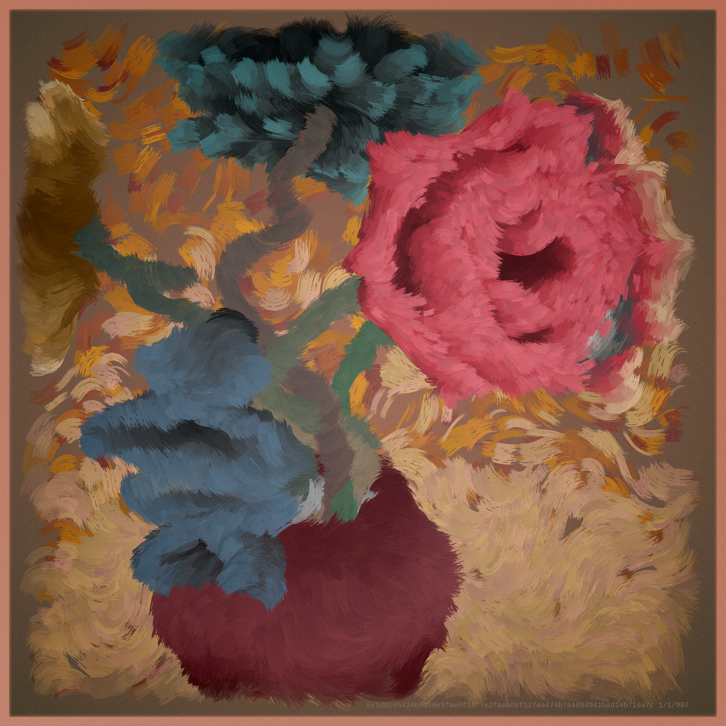 Chimera is a natural progression of still life. It is an old tradition in the very new medium of on-chain generative art, a movement that will have an enormous presence in the future. Chimera simultaneously reaches into the past while exploiting the capabilities of the present and seeks to represent a unique moment in time, a generation of art in between digital and physical realities, encapsulating where we came from and where we are going.
