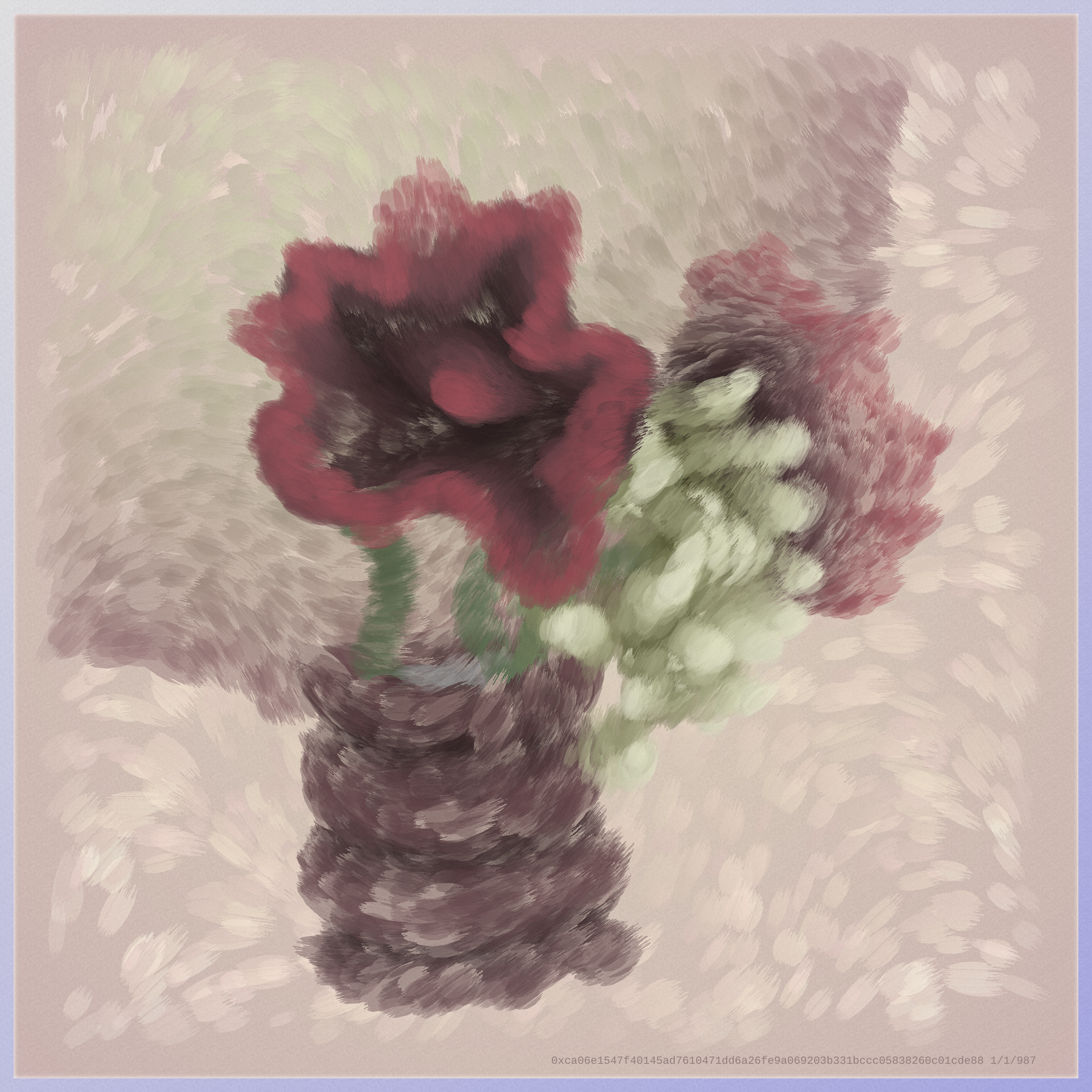 Chimera is a natural progression of still life. It is an old tradition in the very new medium of on-chain generative art, a movement that will have an enormous presence in the future. Chimera simultaneously reaches into the past while exploiting the capabilities of the present and seeks to represent a unique moment in time, a generation of art in between digital and physical realities, encapsulating where we came from and where we are going.