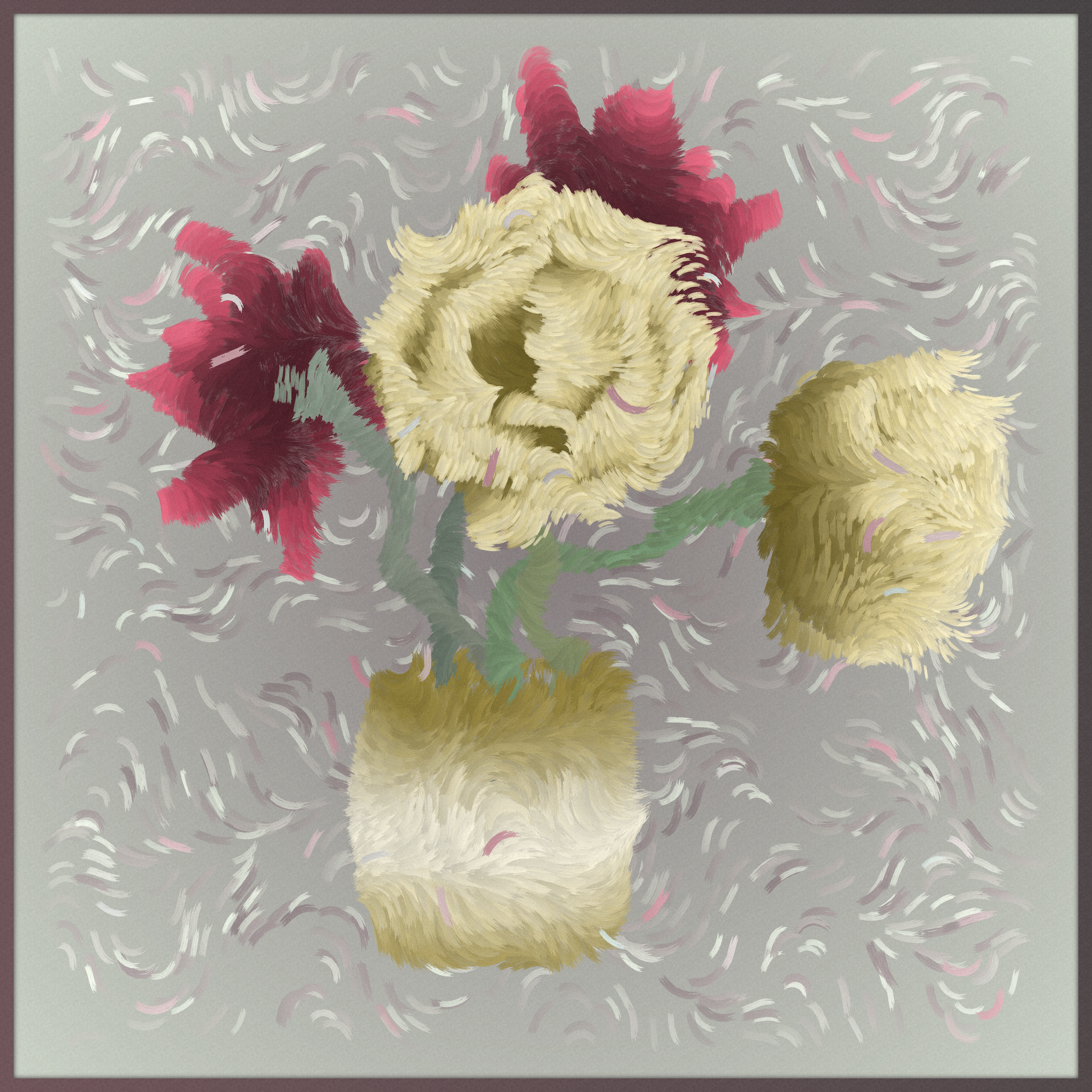 Chimera is a natural progression of still life. It is an old tradition in the very new medium of on-chain generative art, a movement that will have an enormous presence in the future. Chimera simultaneously reaches into the past while exploiting the capabilities of the present and seeks to represent a unique moment in time, a generation of art in between digital and physical realities, encapsulating where we came from and where we are going.