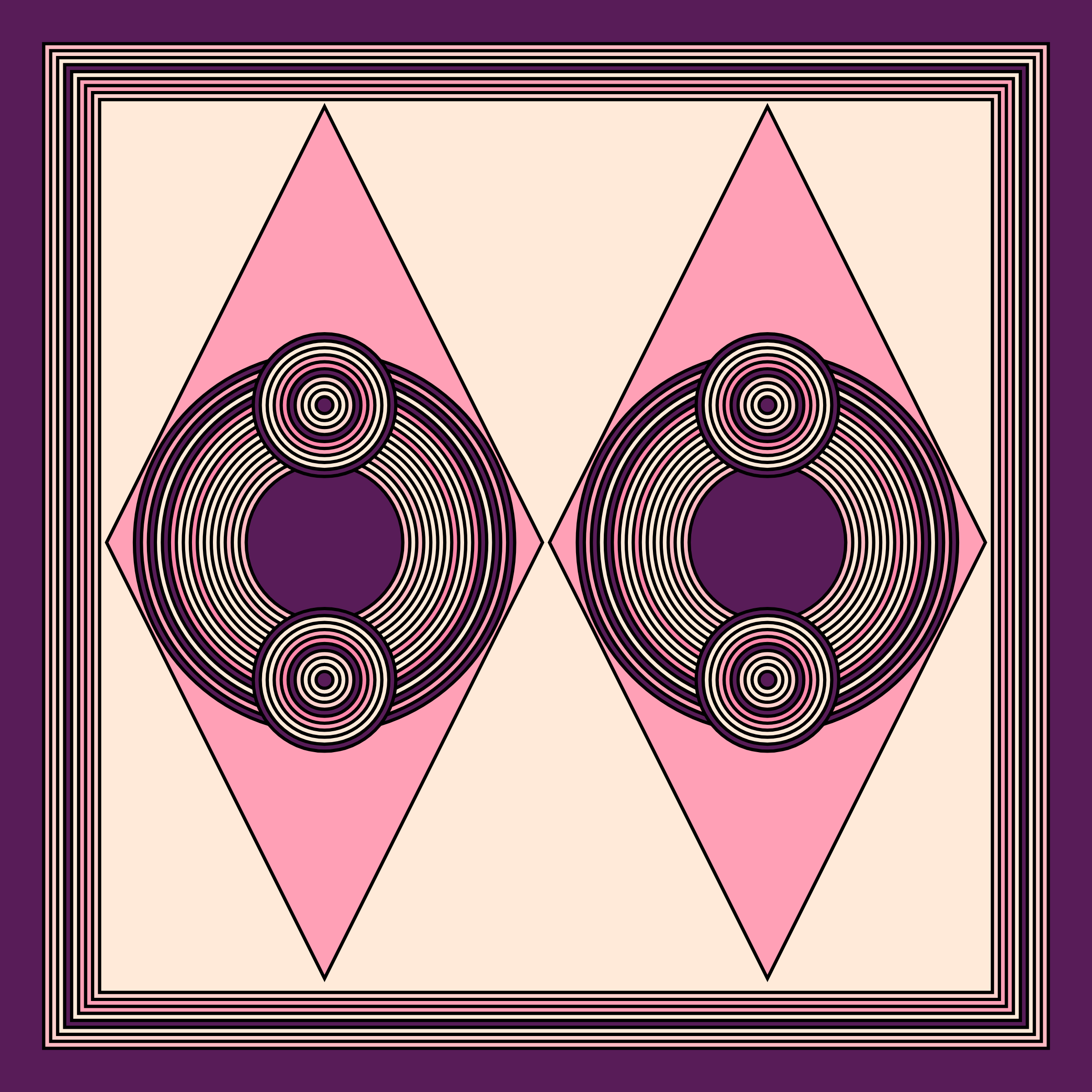 A study in composition using simple shapes and layout rules. When repetitive patterns fail, and the symmetry isn't quite right, the images are strangely evocative. Somewhere between art deco, pop art, and sci-fi.