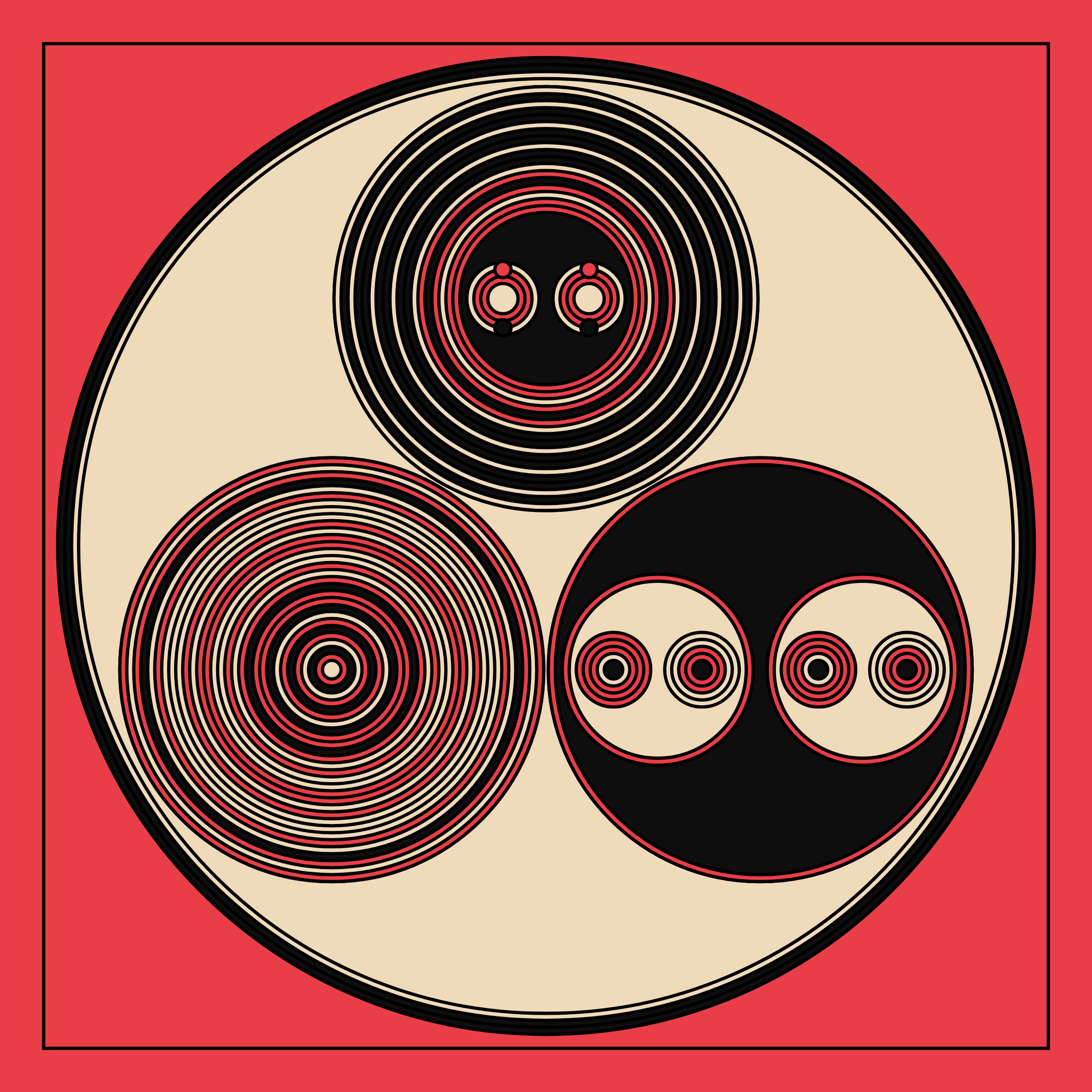 A study in composition using simple shapes and layout rules. When repetitive patterns fail, and the symmetry isn't quite right, the images are strangely evocative. Somewhere between art deco, pop art, and sci-fi.