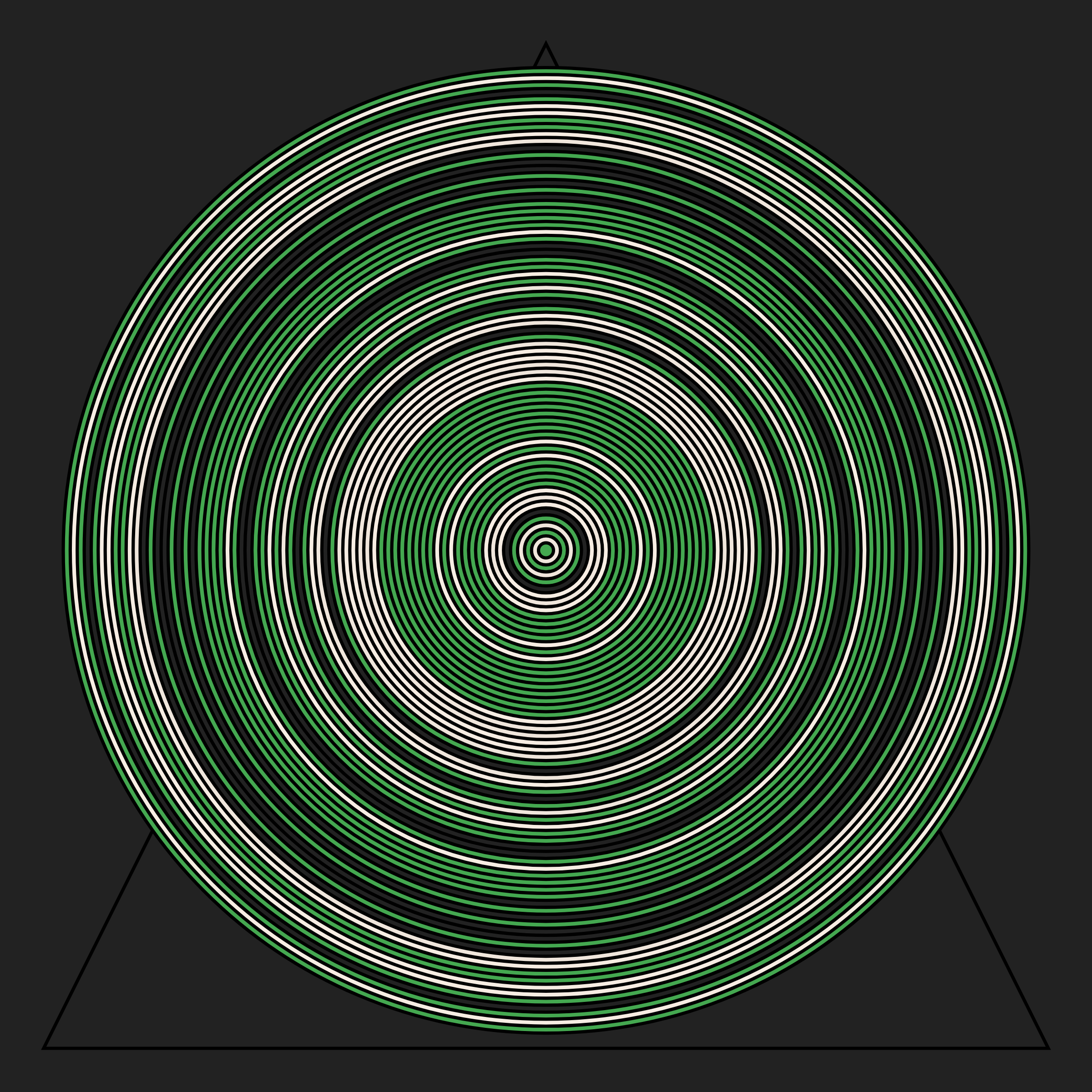A study in composition using simple shapes and layout rules. When repetitive patterns fail, and the symmetry isn't quite right, the images are strangely evocative. Somewhere between art deco, pop art, and sci-fi.