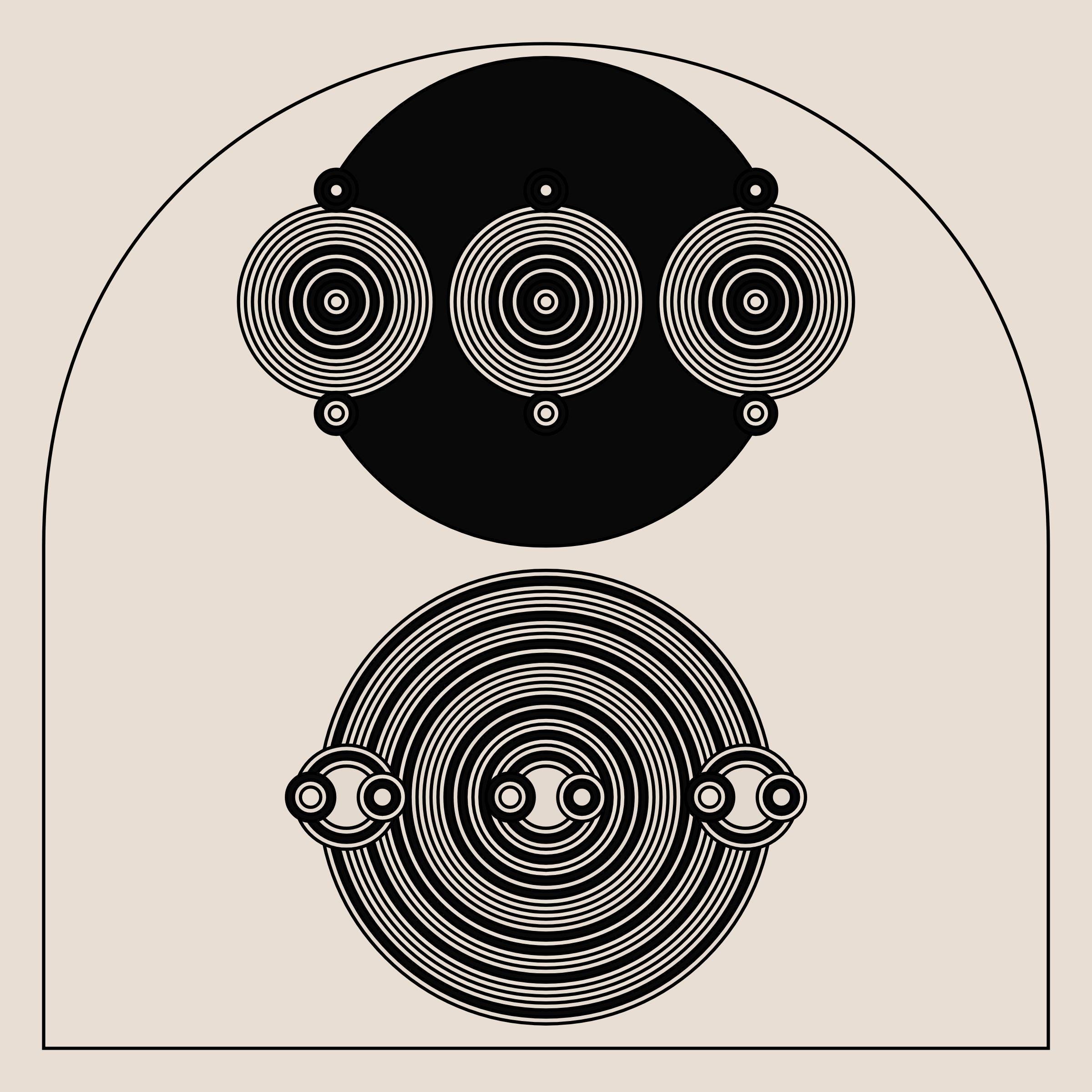 A study in composition using simple shapes and layout rules. When repetitive patterns fail, and the symmetry isn't quite right, the images are strangely evocative. Somewhere between art deco, pop art, and sci-fi.