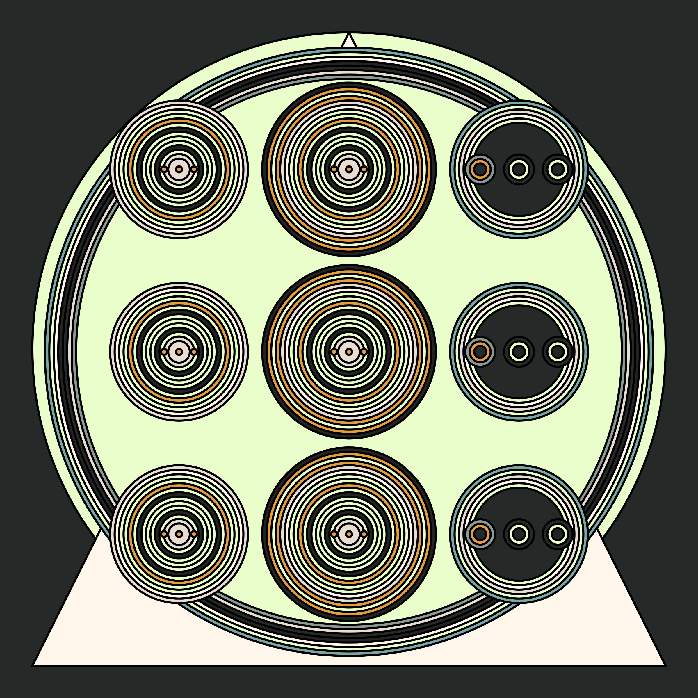 A study in composition using simple shapes and layout rules. When repetitive patterns fail, and the symmetry isn't quite right, the images are strangely evocative. Somewhere between art deco, pop art, and sci-fi.