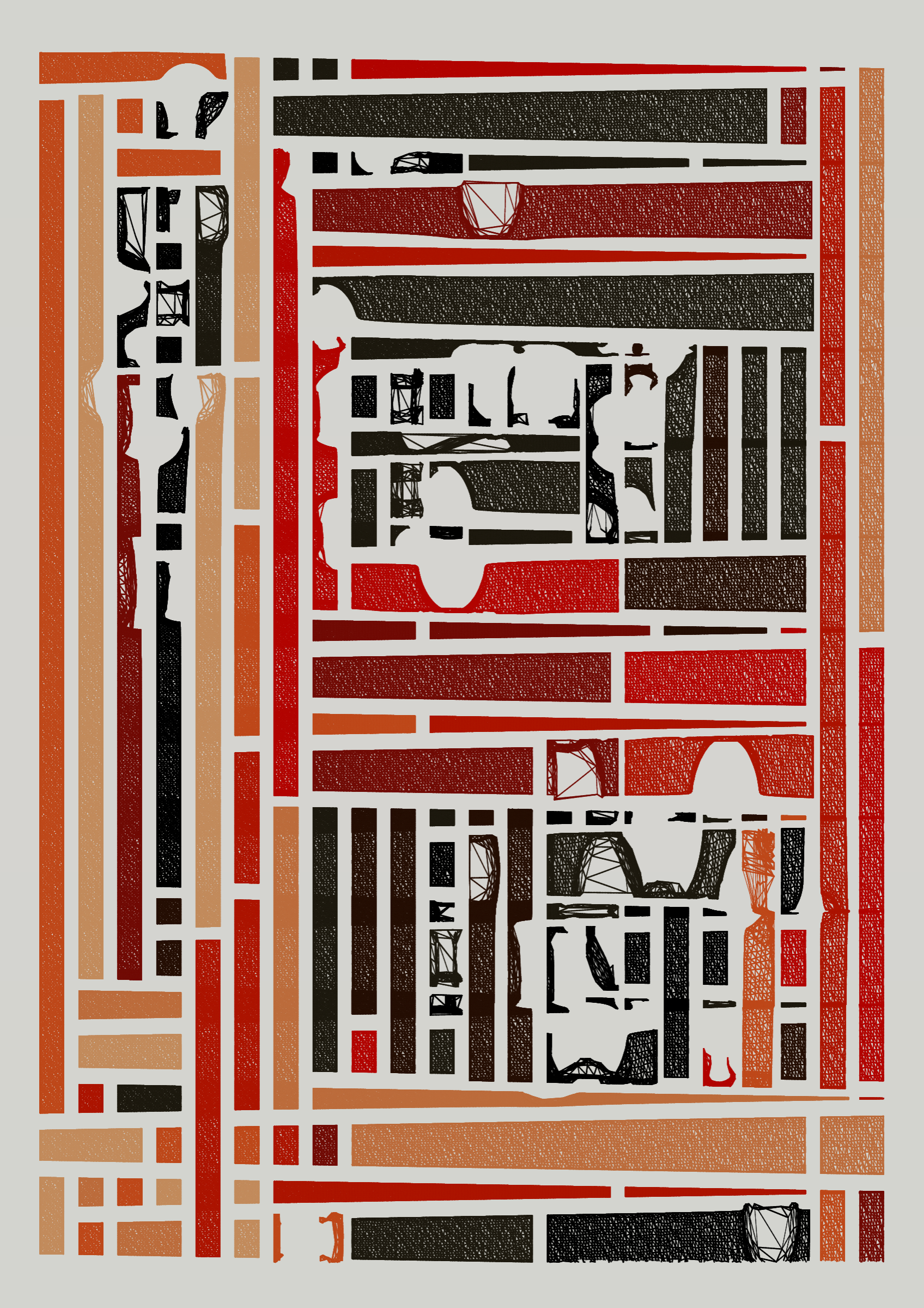 "Edifice" is a series of 976 massive, deteriorating structures built on strange terrain. It is an exploration of buildings being conceptualized, constructed, and eroded away under a wide variety of conditions. Edifice's outputs run the gamut between minimal and maximal, with some showing few large, static blocks of color, and others many small, highly textured and warped shapes. Each image is progressively constructed in front of the viewer's eyes. It is a system full of surprises that I'm excited to share with the world.