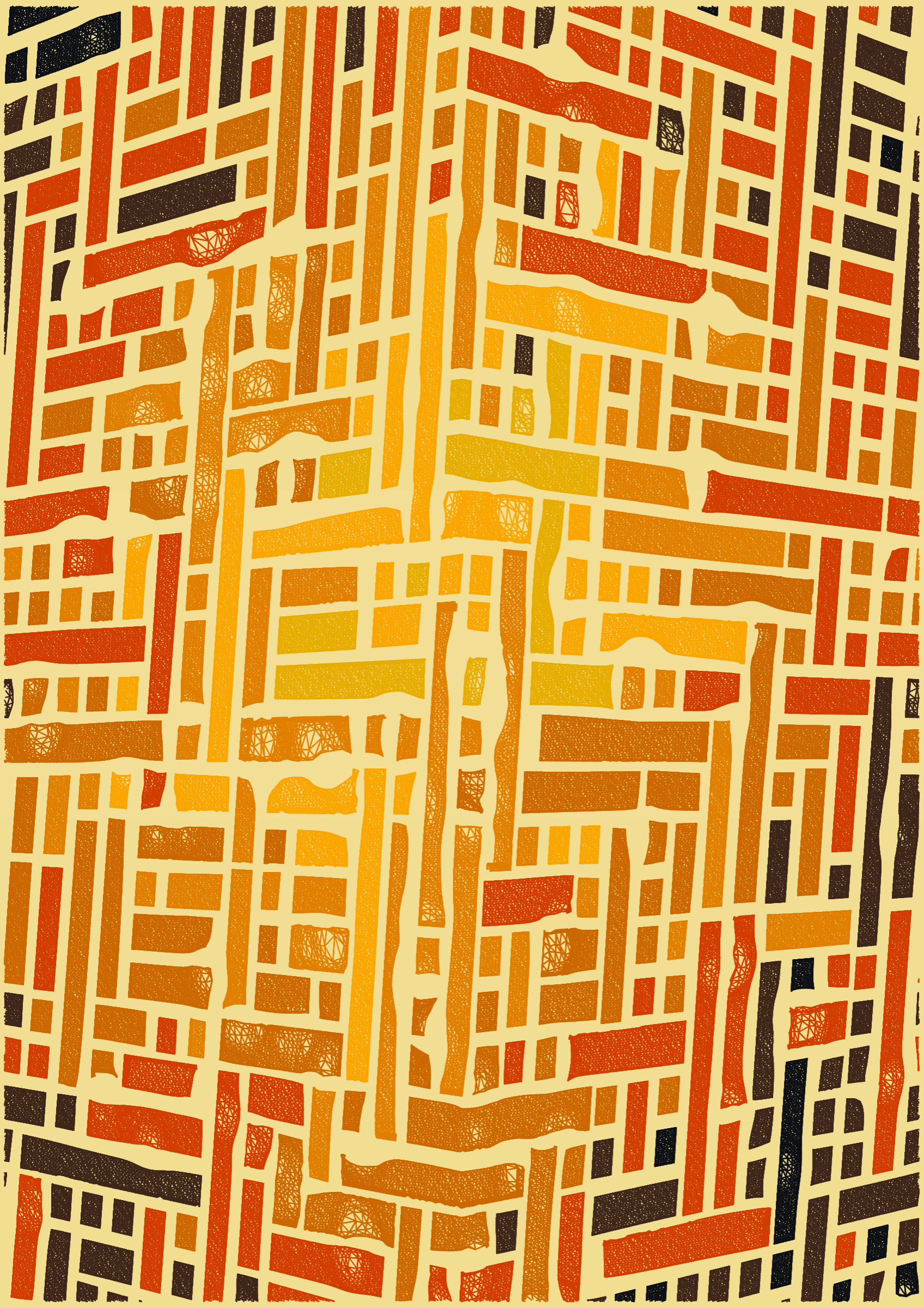 "Edifice" is a series of 976 massive, deteriorating structures built on strange terrain. It is an exploration of buildings being conceptualized, constructed, and eroded away under a wide variety of conditions. Edifice's outputs run the gamut between minimal and maximal, with some showing few large, static blocks of color, and others many small, highly textured and warped shapes. Each image is progressively constructed in front of the viewer's eyes. It is a system full of surprises that I'm excited to share with the world.