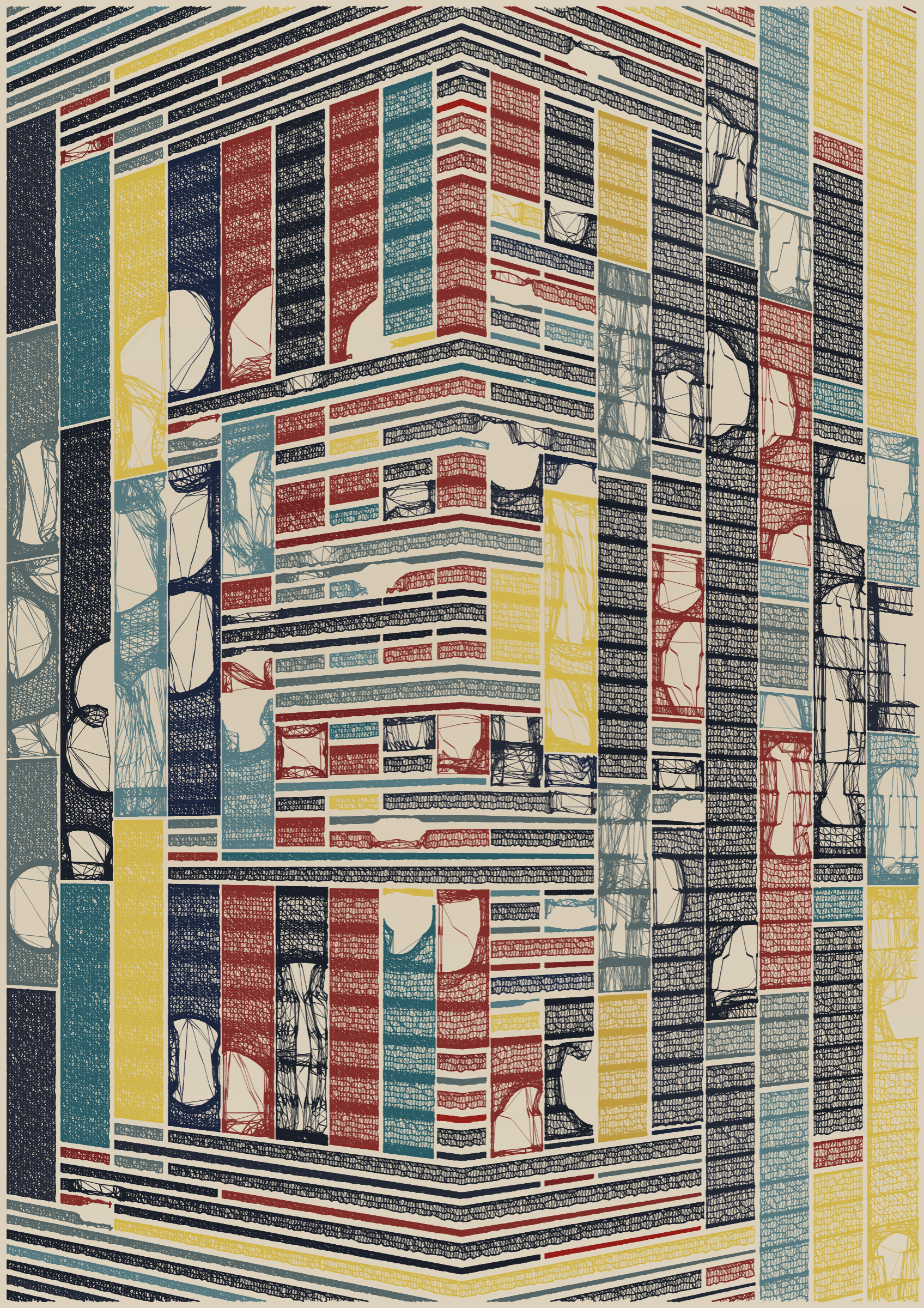 "Edifice" is a series of 976 massive, deteriorating structures built on strange terrain. It is an exploration of buildings being conceptualized, constructed, and eroded away under a wide variety of conditions. Edifice's outputs run the gamut between minimal and maximal, with some showing few large, static blocks of color, and others many small, highly textured and warped shapes. Each image is progressively constructed in front of the viewer's eyes. It is a system full of surprises that I'm excited to share with the world.