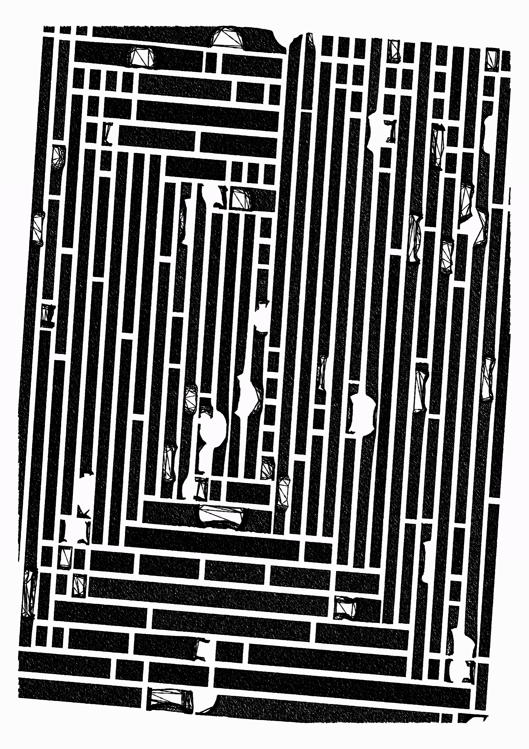 "Edifice" is a series of 976 massive, deteriorating structures built on strange terrain. It is an exploration of buildings being conceptualized, constructed, and eroded away under a wide variety of conditions. Edifice's outputs run the gamut between minimal and maximal, with some showing few large, static blocks of color, and others many small, highly textured and warped shapes. Each image is progressively constructed in front of the viewer's eyes. It is a system full of surprises that I'm excited to share with the world.